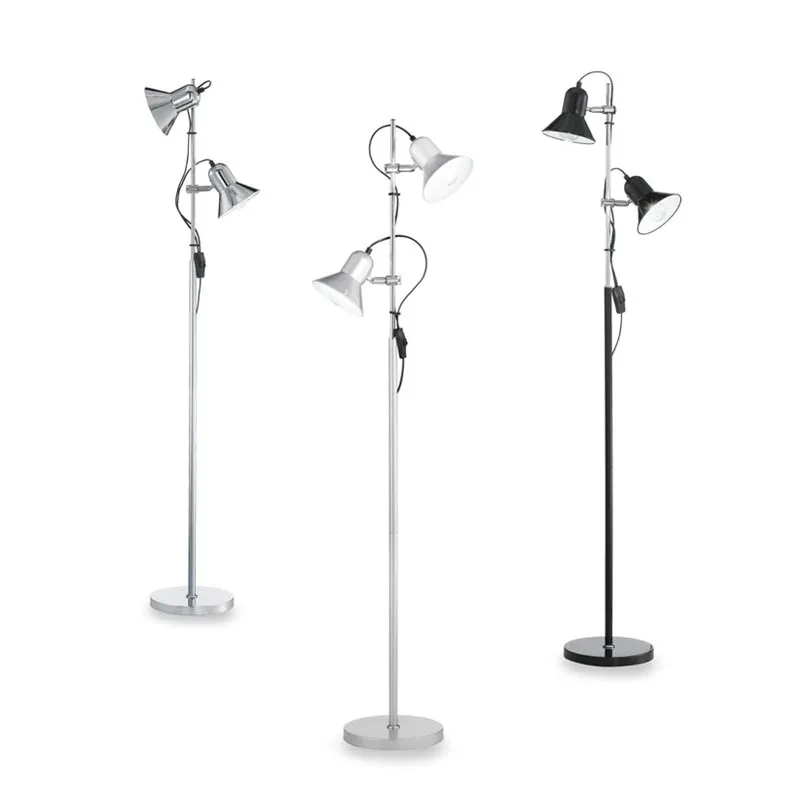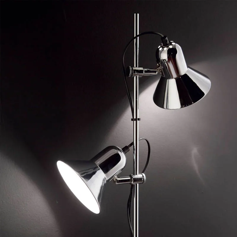Die Möglichkeit, die Leuchtenköpfe zu drehen und zu schwenken, ermöglicht es den Benutzern, das Licht genau dorthin zu lenken, wo es benötigt wird, was sie zu einer idealen Wahl für Leseliebhaber und jene macht, die eine individuell anpassbare Beleuchtung in ihrem Wohnbereich wünschen. Darüber hinaus ist die Stehleuchte in drei eleganten Farbausführungen erhältlich – schwarz, chrom und silber –, die es leicht machen, sie mit verschiedenen Einrichtungsstilen zu kombinieren. Diese stilvolle und vielseitige Stehleuchte ist nicht nur ein praktisches Beleuchtungselement, sondern auch ein ästhetisches Statement, das jedem Wohnraum eine moderne und raffinierte Note verleiht.