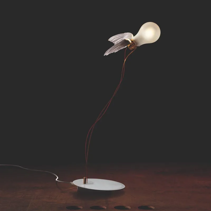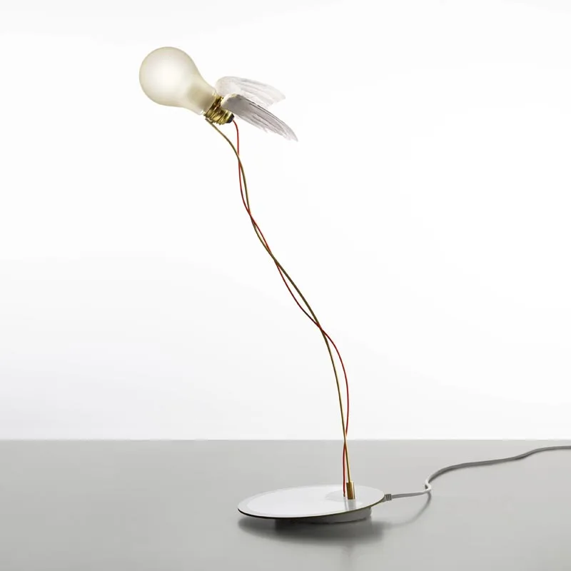 Das Design der Lucellino Touch Tischleuchte basiert auf der berühmten geflügelten Glühlampe, die der renommierte Designer Ingo Maurer bereits im Jahr 1992 entworfen hat. Die Lampe besteht aus einem handgefertigten Flügelset, das aus zarten Gänsefedern gefertigt und direkt auf dem E27-Sockel platziert ist. Das charakteristische rote Kabel ist geschickt mit der Glühbirne verbunden und verleiht der Leuchte eine verspielte Note. Ein besonderes Highlight der Lucellino Touch ist ihre Flexibilität, da die einzelnen Drähte nach Belieben gebogen werden können, um individuelle Lichtakzente zu setzen und die Beleuchtung Ihren persönlichen Vorlieben anzupassen.