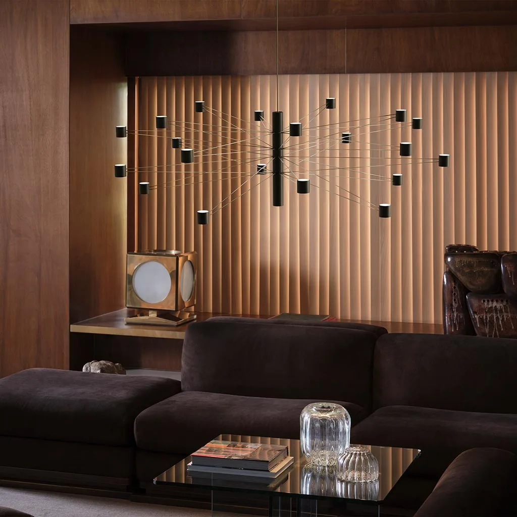 Die Polar LED-Pendelleuchte von KDLN, entworfen vom Yonoh Creative Studio, vereint technische Raffinesse mit künstlerischem Anspruch. Inspiriert von der Dynamik eines Sternensystems, entfaltet sich ihre Struktur in alle Richtungen – ein harmonisches Spiel aus Linien, Lichtpunkten und perfekter Geometrie.