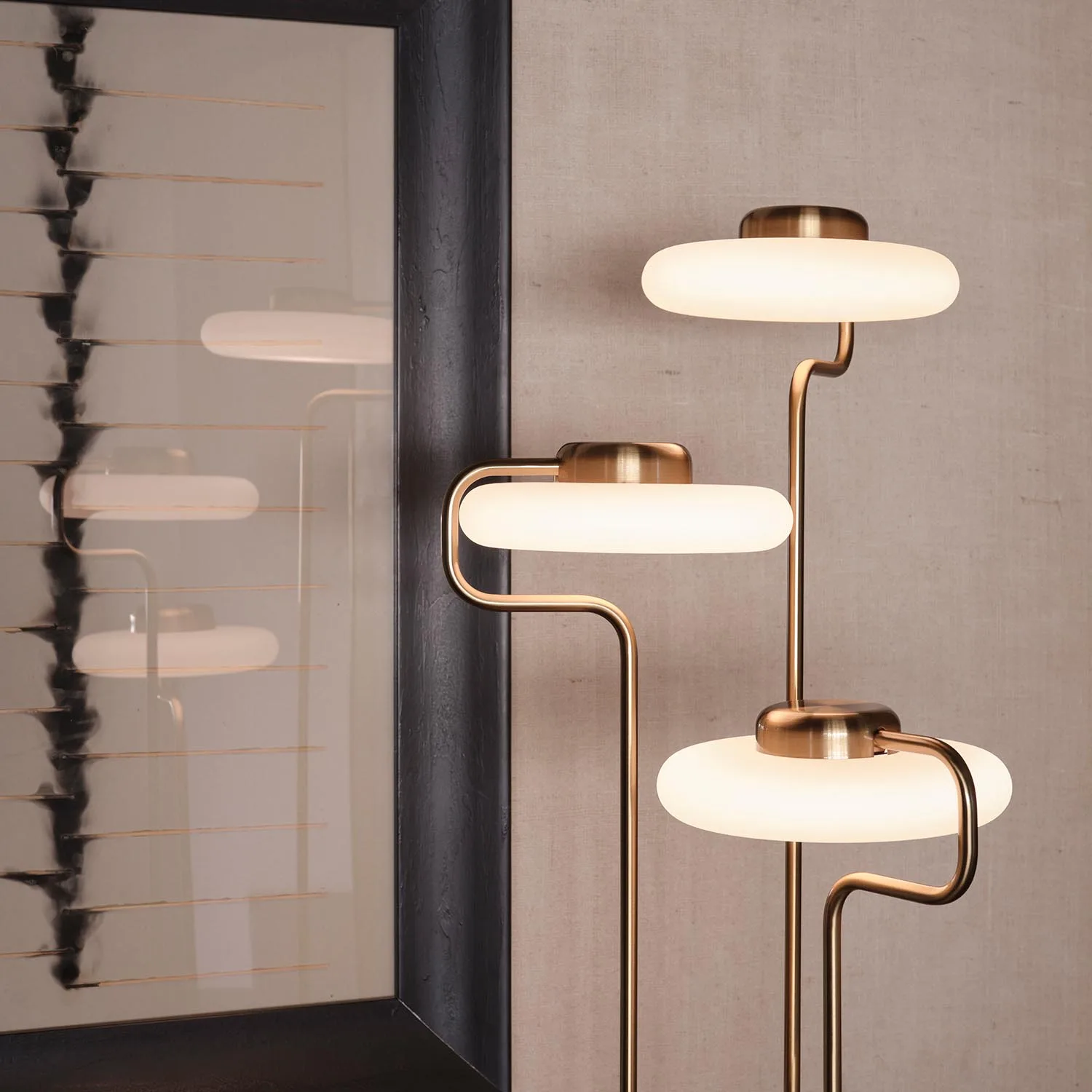Wie eine Lichtskulptur erhebt sich die Leuchte in den Raum und definiert neue vertikale Perspektiven. Die asymmetrische Anordnung der Lichtquellen verleiht ihr eine rhythmische Leichtigkeit und macht sie zum ausdrucksstarken Gestaltungselement – ob im Wohnraum, in der Lobby oder im kreativen Studio.