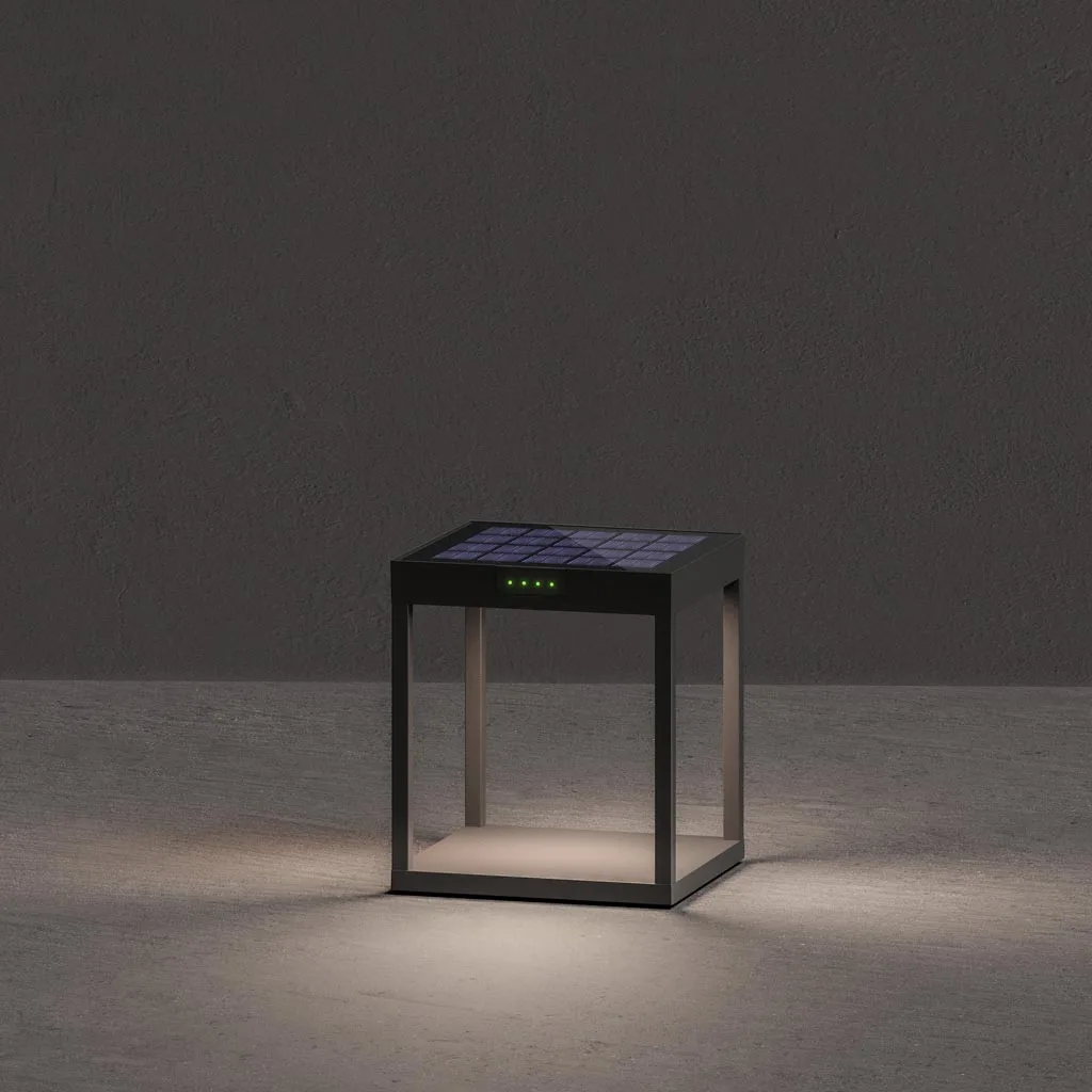 Als solarbetriebene Leuchte mit integriertem Akku benötigt die Radia Ground keine Verkabelung oder aufwendige Installation. Sie lässt sich flexibel dort aufstellen, wo Licht benötigt wird – unabhängig von Stromquellen. Nach einer Ladezeit von 8 bis 10 Stunden spendet sie bis zu 25 Stunden sanftes, gleichmäßiges Licht – ideal für gemütliche Abende im Freien. Ein durchdachtes Modell, das Nachhaltigkeit, Funktionalität und Ästhetik in einer kompakten Form vereint. Über einen Sensor am Gehäuse lässt sich die Leuchte stufenlos in der Helligkeit regulieren.