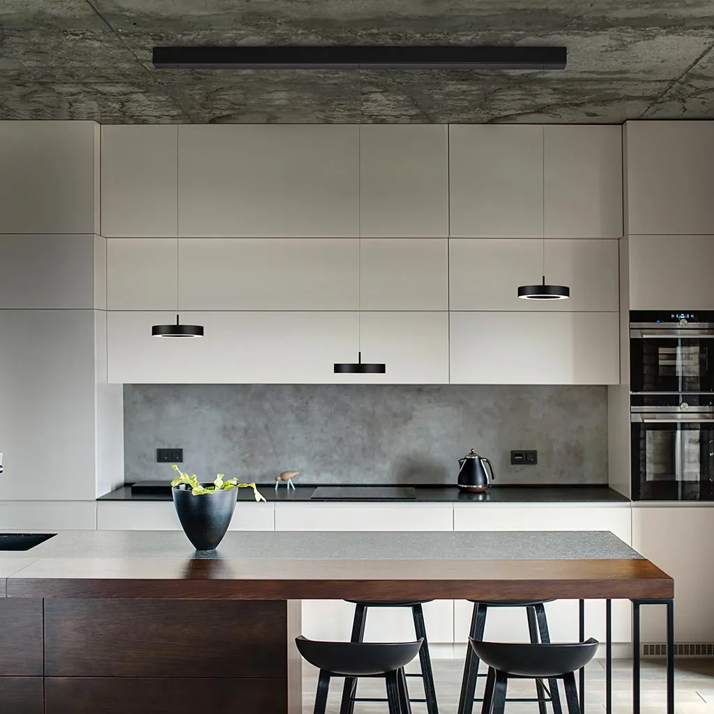 DAJA-3 strahlt ihr Licht sanft und direkt nach unten und setzt Esstische oder Kochinseln perfekt in Szene – für eine atmosphärische und stilvolle Beleuchtung. Erhältlich in den edlen Oberflächen Nickel matt, Schwarz, Sand Metallic oder Effekt-Bronze, fügt sich diese hochwertige Leuchte harmonisch in jedes exklusive Wohnambiente ein.