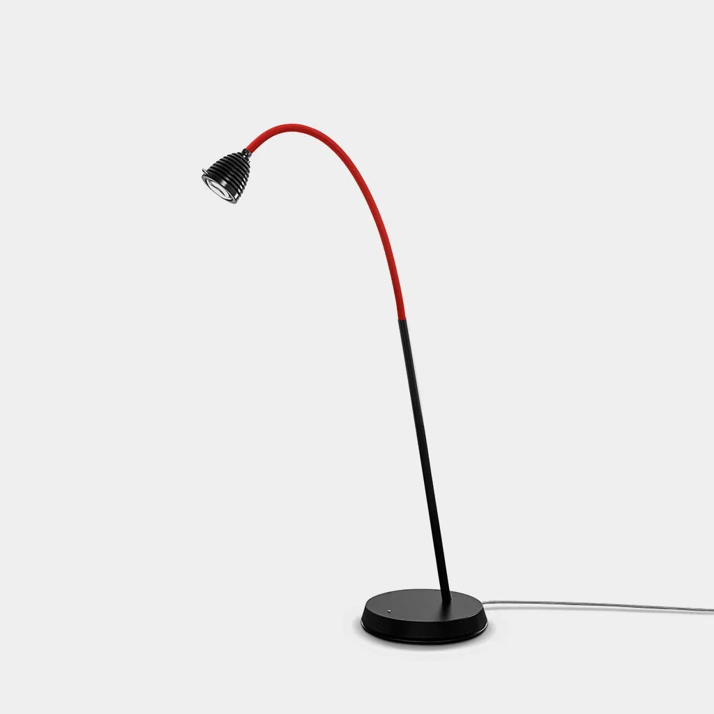 Der flexible Leuchtenarm mit optionalem, farbigem Textilüberzug lässt sich in jede gewünschte Position biegen und passt sich perfekt Ihrer Arbeitsumgebung an. Das Standrohr der Leuchte ist um 10° neigbar, was zusätzliche Ausrichtungsmöglichkeiten bietet. Der massive Aluminiumfuß sorgt dabei für Stabilität und eine hochwertige Optik.