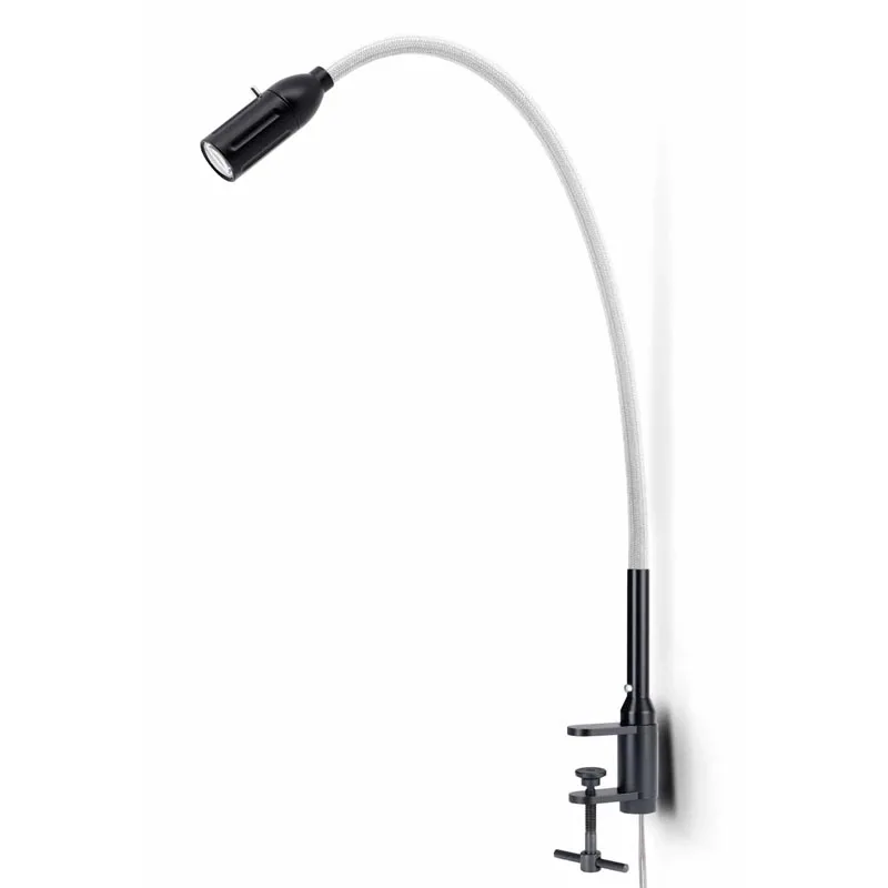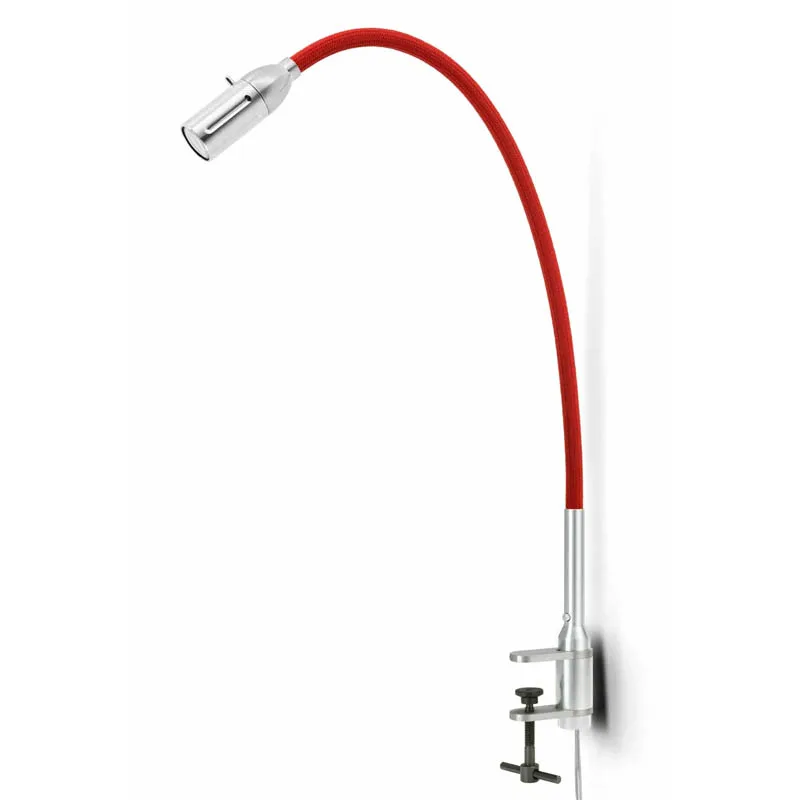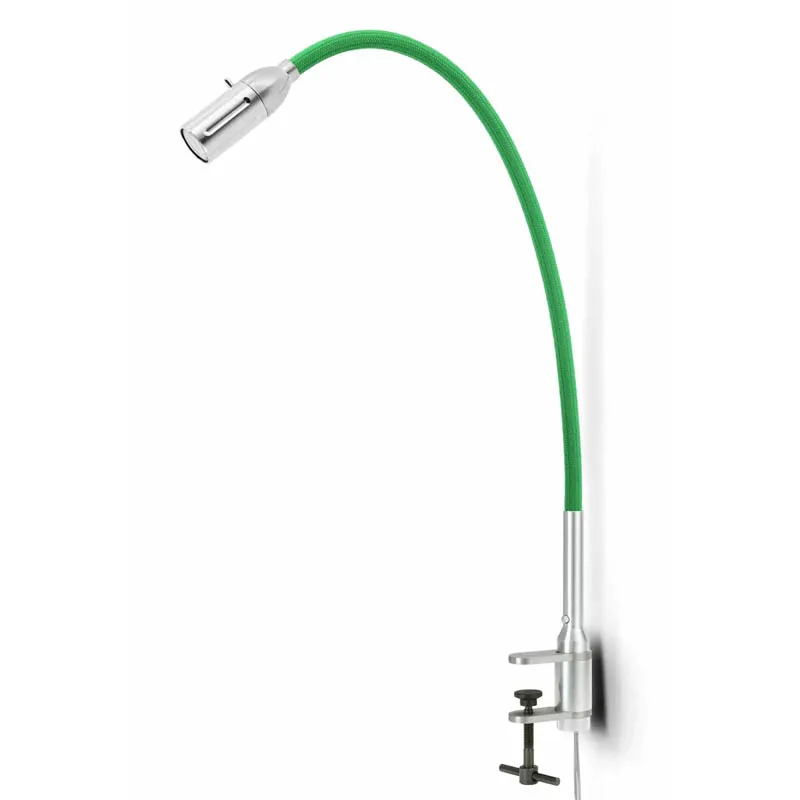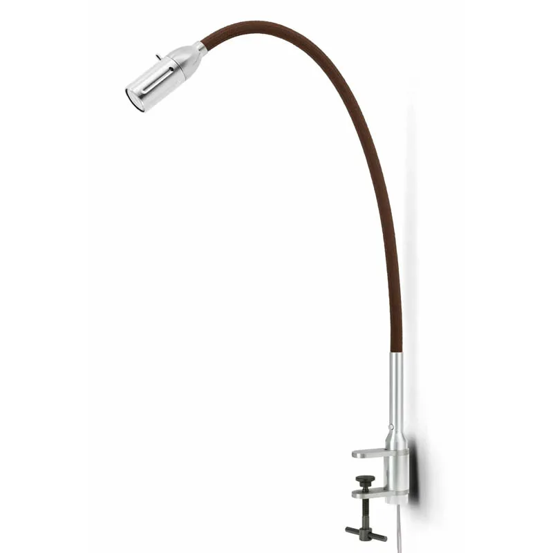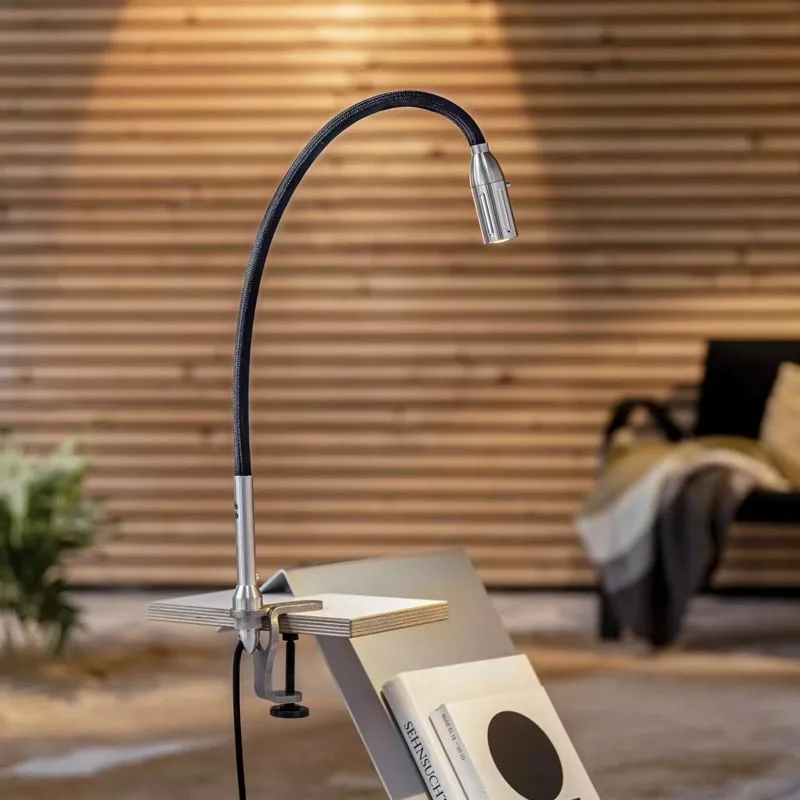 Mit ihrer stabilen Stahlschraubklemme demonstriert die Leuchte eine außergewöhnliche Flexibilität. Die anpassungsfähige Welle, verfügbar mit einer edlen, gebürsteten Aluminiumoberfläche oder einem ansprechenden, farbigen Textilbezug, gewährleistet optimale Beweglichkeit. Der Lichtkegel lässt sich damit gezielt und ohne Anstrengung genau dorthin lenken, wo er benötigt wird. Der fokussierbare Leuchtkopf ermöglicht eine individuelle Anpassung, während die einstellbare Lichtkegelbreite für jede Aktivität die ideale Beleuchtungsatmosphäre schafft.
