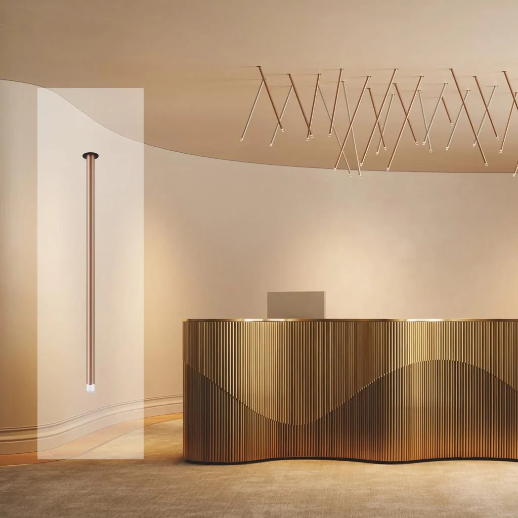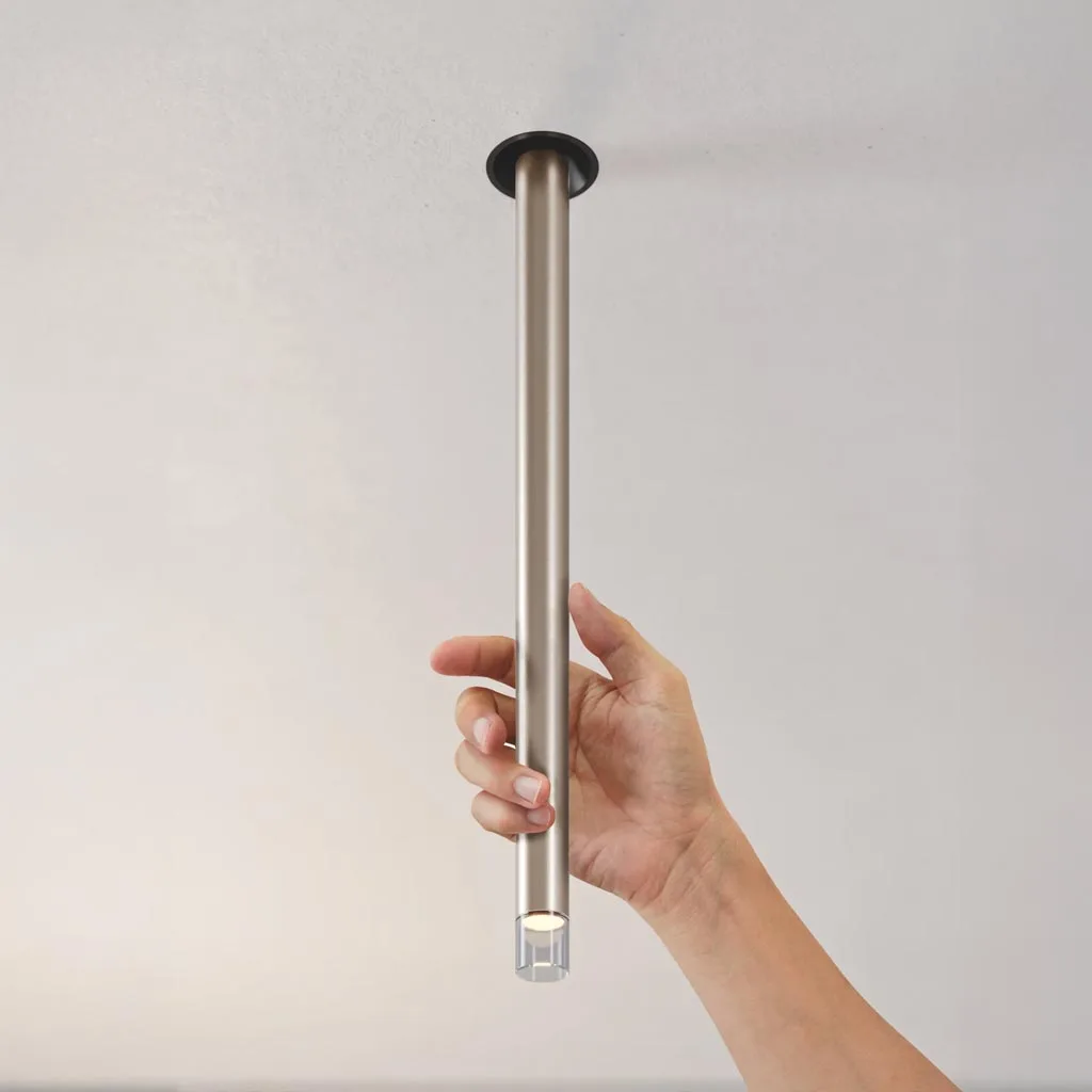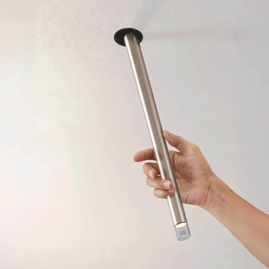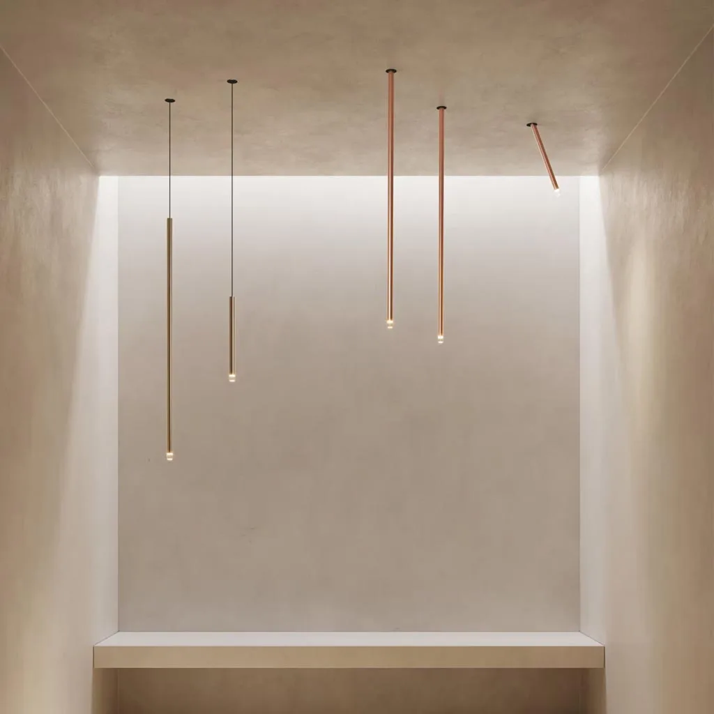 Erhältlich in den Längen Small, Medium und Large sowie in sechs edlen Farbtönen – von glänzend für moderne Eleganz bis matt für minimalistische Räume – ermöglicht die A-Tube Nano Swing vielseitige Gestaltungskonzepte. Die Einbau-Deckenmontage sorgt für eine dezente, fast schwebende Optik, ideal für Eingangsbereiche, Lounges oder stilvolle Wohnräume.