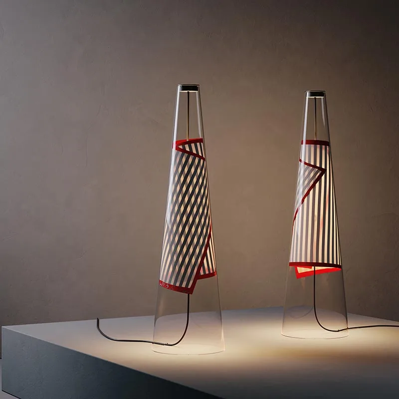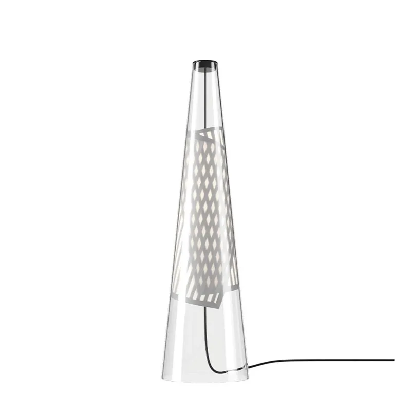 Dieses Meisterwerk der Lichttechnik, das in Zusammenarbeit von Lodes und dem weltbekannten Designer Ron Arad entstanden ist, besticht nicht nur durch seine Eleganz, sondern auch durch seine innovative Technik. Eine flexible Leiterplatte, eingebettet in einen transparenten Kegel aus Pyrex®, erzeugt eine beeindruckende Lichtdynamik, sobald die Leuchte eingeschaltet wird. Das Spiel von Licht und Schatten, das durch das optische Geflecht der Leiterplatte entsteht, verleiht jedem Raum eine warme, einladende Atmosphäre, während der integrierte Touchdimmer am Leuchtenkopf eine individuelle Anpassung der Helligkeit ermöglicht.