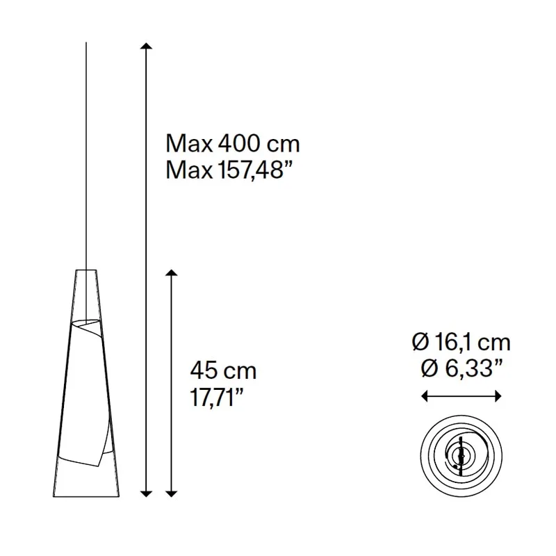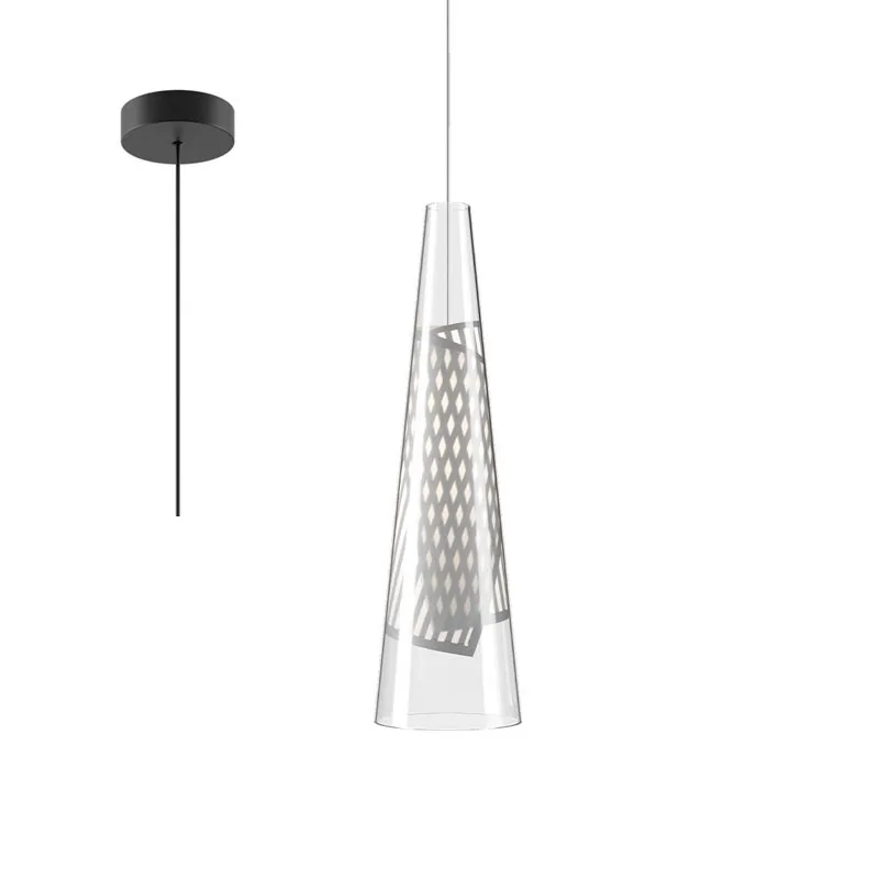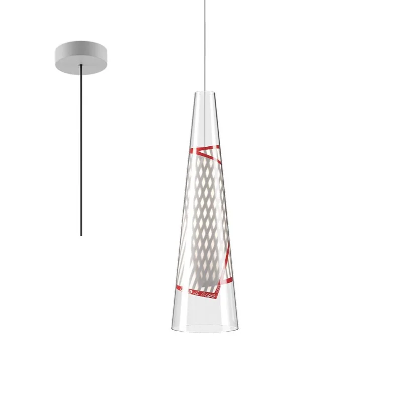 Durch die innovative Technologie und das kreative Design von Ron Arad entfaltet die Cono di Luce Pendelleuchte ihre volle Wirkung. Die flexible Leiterplatte, die in einem transparenten Pyrex®-Kegel eingebettet ist, erzeugt ein beeindruckendes Lichtspiel, das den Raum in ein weiches, einladendes Licht taucht. Sobald die Leuchte eingeschaltet wird, entfaltet sich ein optisches Geflecht aus Licht, Schatten und Überlagerungen, das ein unvergleichliches visuelles Erlebnis schafft.