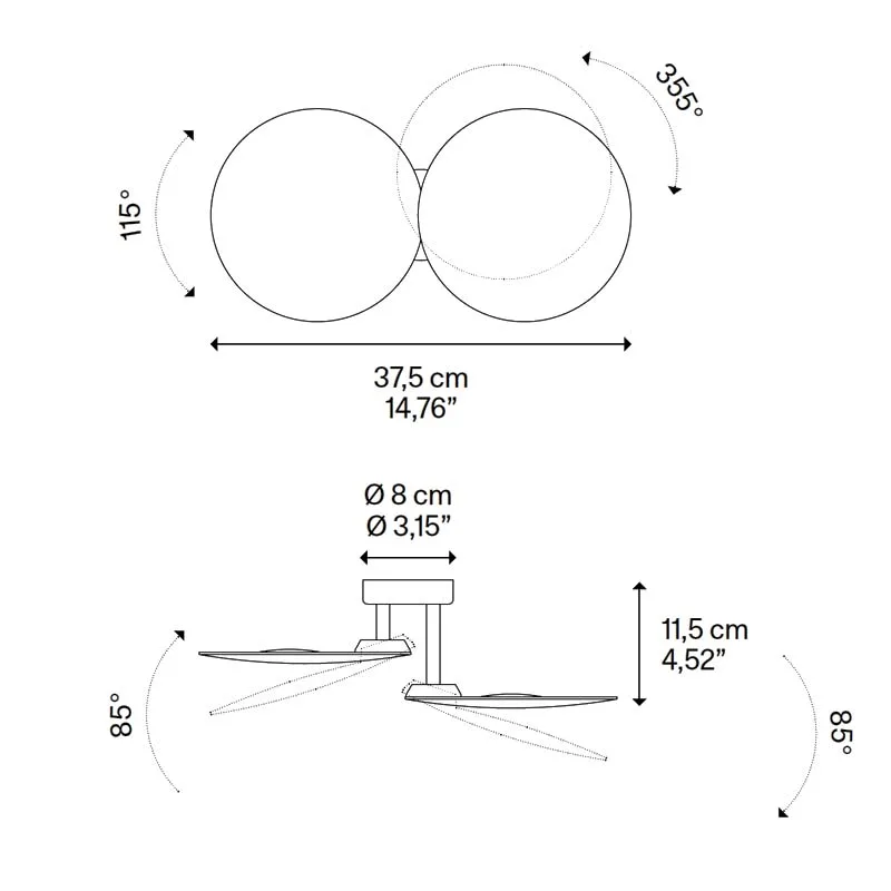 Die Lodes Puzzle Round Double LED-Wand- und Deckenleuchte vereint funktionales Design mit innovativer Lichttechnik und bietet flexible Beleuchtungslösungen für jeden Raum. Diese Leuchte verfügt über zwei verstellbare, runde Blendscheiben, die sowohl indirektes als auch warmes Licht spenden. Durch die Möglichkeit, die Leuchte um bis zu 85° zu kippen und 355° zu drehen, können Sie die Lichtausrichtung individuell an Ihre Bedürfnisse und Ihr Raumdesign anpassen.