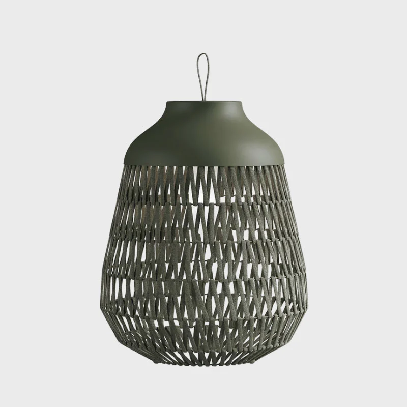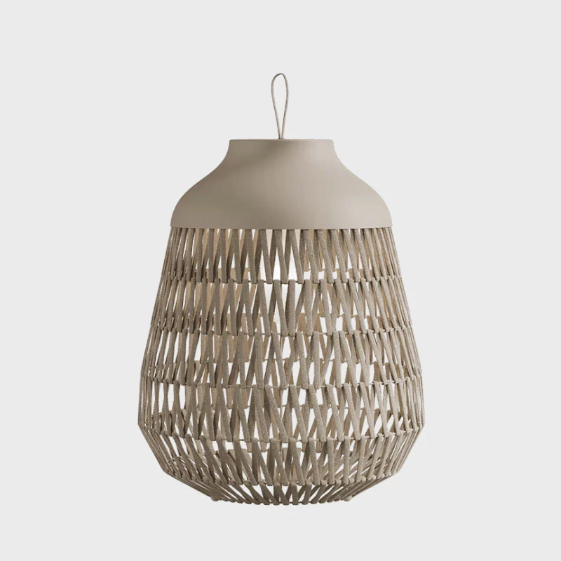 Durch diese besondere Konstruktion entstehen faszinierende Lichtspiele: Das Licht dringt sanft durch die Zwischenräume des Gewebes, erzeugt lebendige Schattenmuster und sorgt für eine angenehme, diffuse Lichtwirkung. Gerade in den Abendstunden entfaltet die Leuchte ihre volle Wirkung und schafft eine warme, wohnliche Atmosphäre, die an entspannte Sommerabende im Freien erinnert.
