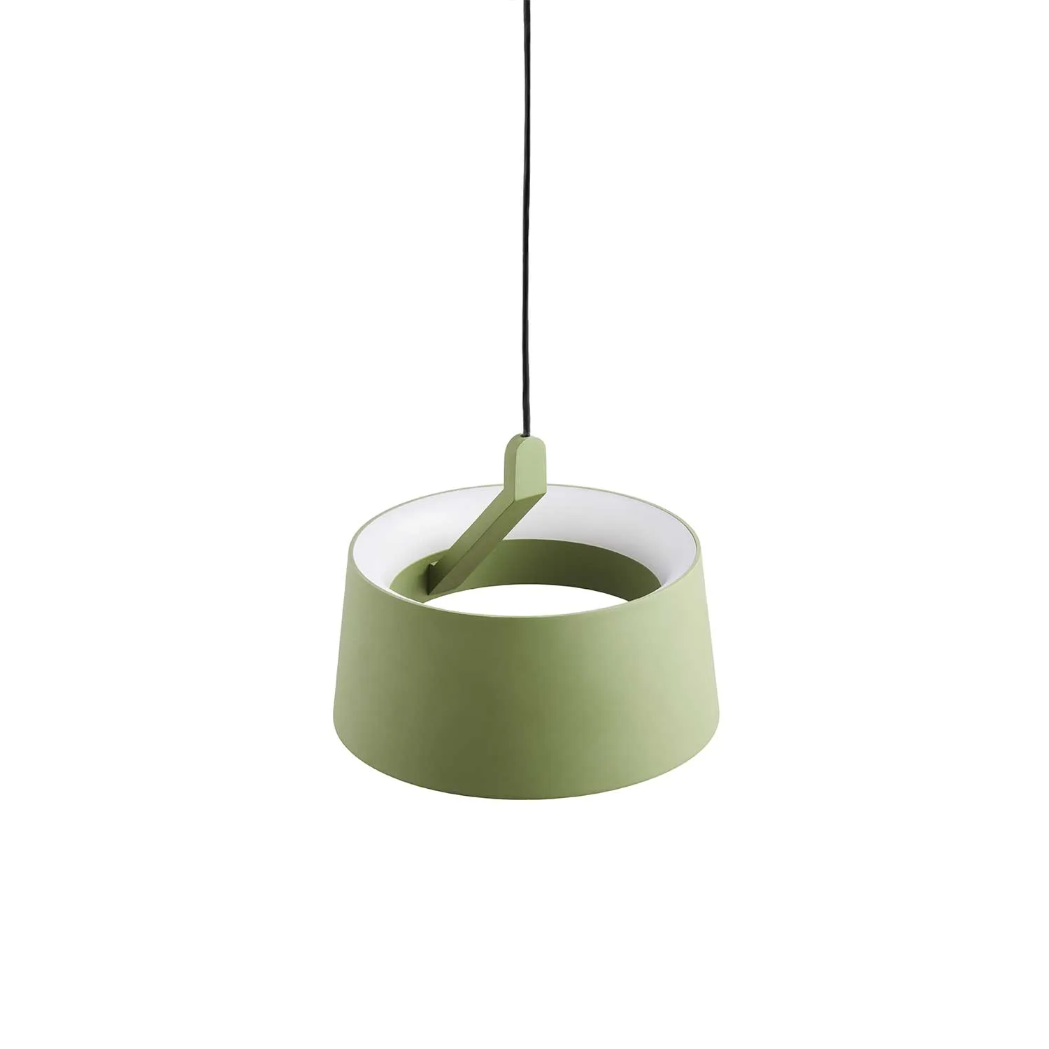 Cookie besticht durch ihr elegantes Aufhängungssystem, das ihr beinahe ein schwebendes Erscheinungsbild verleiht. Der Baldachin ist harmonisch in derselben Farbe wie der Lampenschirm gestaltet, was ein stimmiges Gesamtbild ergibt.