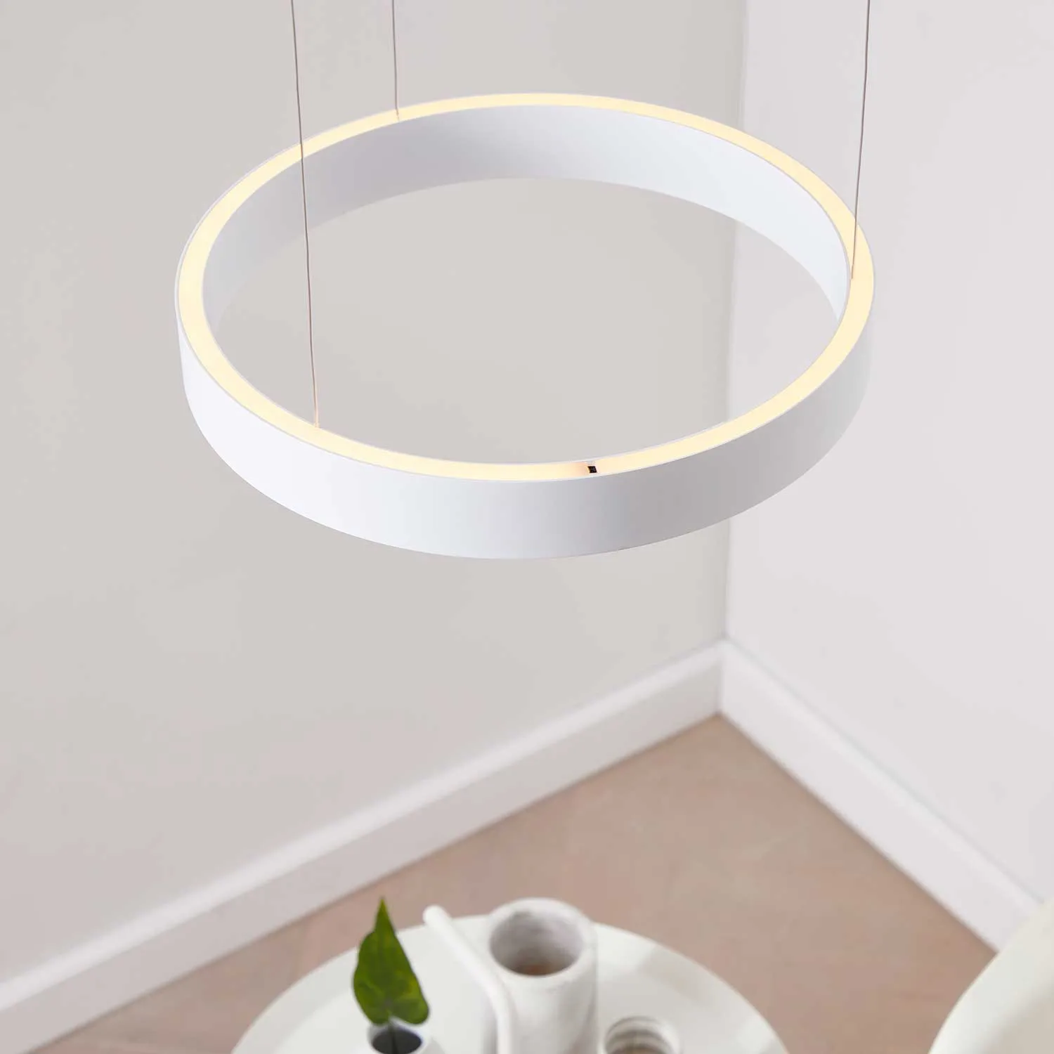Die Leuchte strahlt sowohl nach oben als auch nach unten mit einer Gesamtleistung von 36W (18W nach oben und 18W nach unten) und schafft durch die Farbtemperatur von 2700 Kelvin eine angenehme und warme Atmosphäre. Gefertigt aus hochwertigem Aluminiumdruckguss und kombiniert mit einem eleganten weißen Baldachin, bietet die Pendelleuchte einen edlen, minimalistischen Look im Raum.