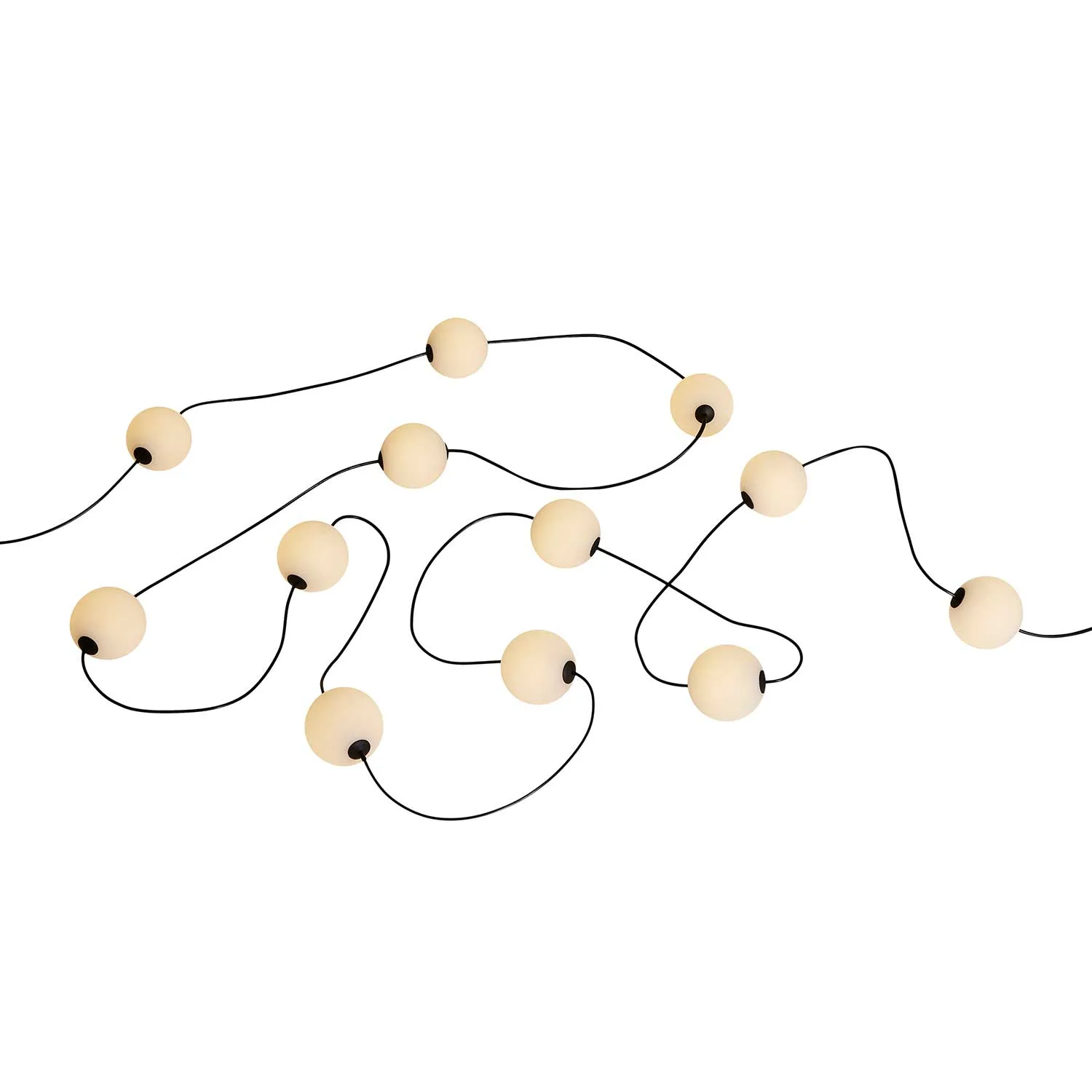 Die MISS Garland 12 ist eine stilvolle Lichterkette mit 12 runden Lämpchen (Ø 10 cm) und einem eleganten schwarzen Kabel, die jedem Raum oder Außenbereich eine gemütliche und dekorative Atmosphäre verleiht. Mit einer Gesamtlänge von 9,86 Metern sorgt sie für eine stimmungsvolle Beleuchtung – perfekt für Terrassen, Balkone, Gärten oder gemütliche Ecken im Wohnbereich.