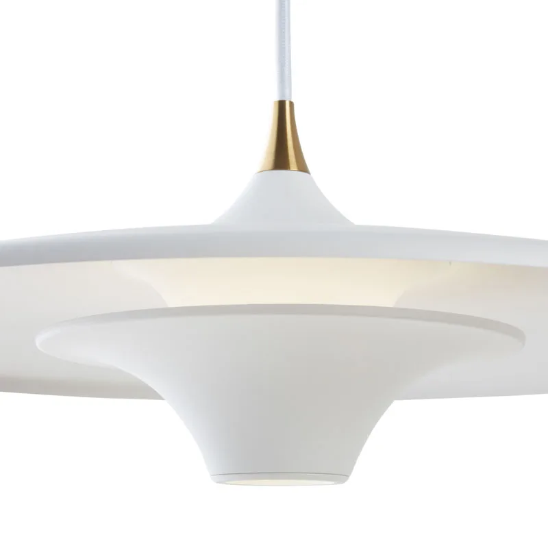 Mit ihrem grazilen Aluminiumschirm und der edlen Messingspitze strahlt diese Pendelleuchte Stil und Eleganz aus, während das leichte und schwebende Design eine moderne Ästhetik vermittelt. Die Lichtintensität der MOJA 35 kann über einen externen Triac-Dimmer individuell reguliert werden, um verschiedenen Lichtanforderungen gerecht zu werden. So erzeugen Sie die perfekte Beleuchtung für jede Gelegenheit, ob für ein gemütliches Abendessen, fokussiertes Arbeiten oder gesellige Zusammenkünfte. Die MOJA 35 LED-Pendelleuchte ist die ideale Wahl für alle, die Ästhetik und Funktionalität in der Beleuchtung schätzen.