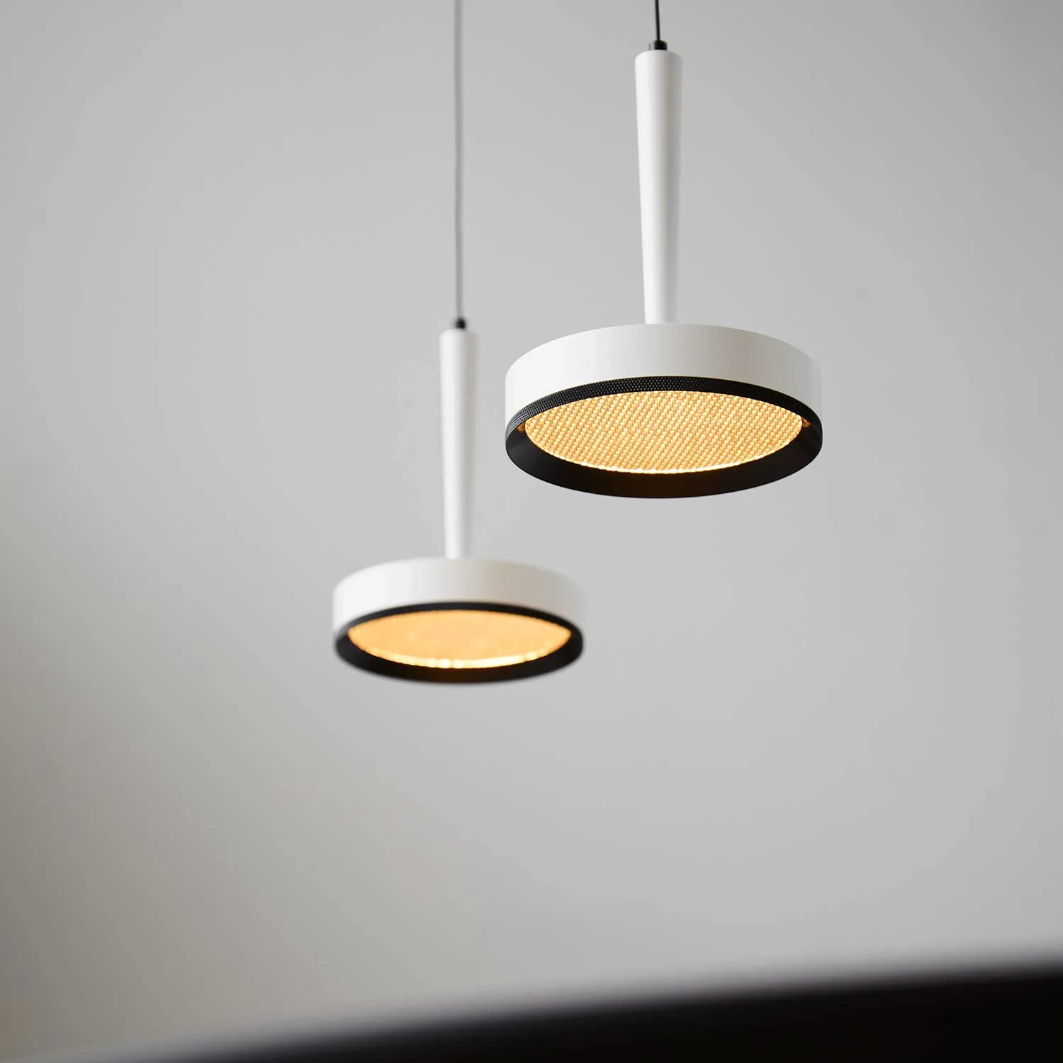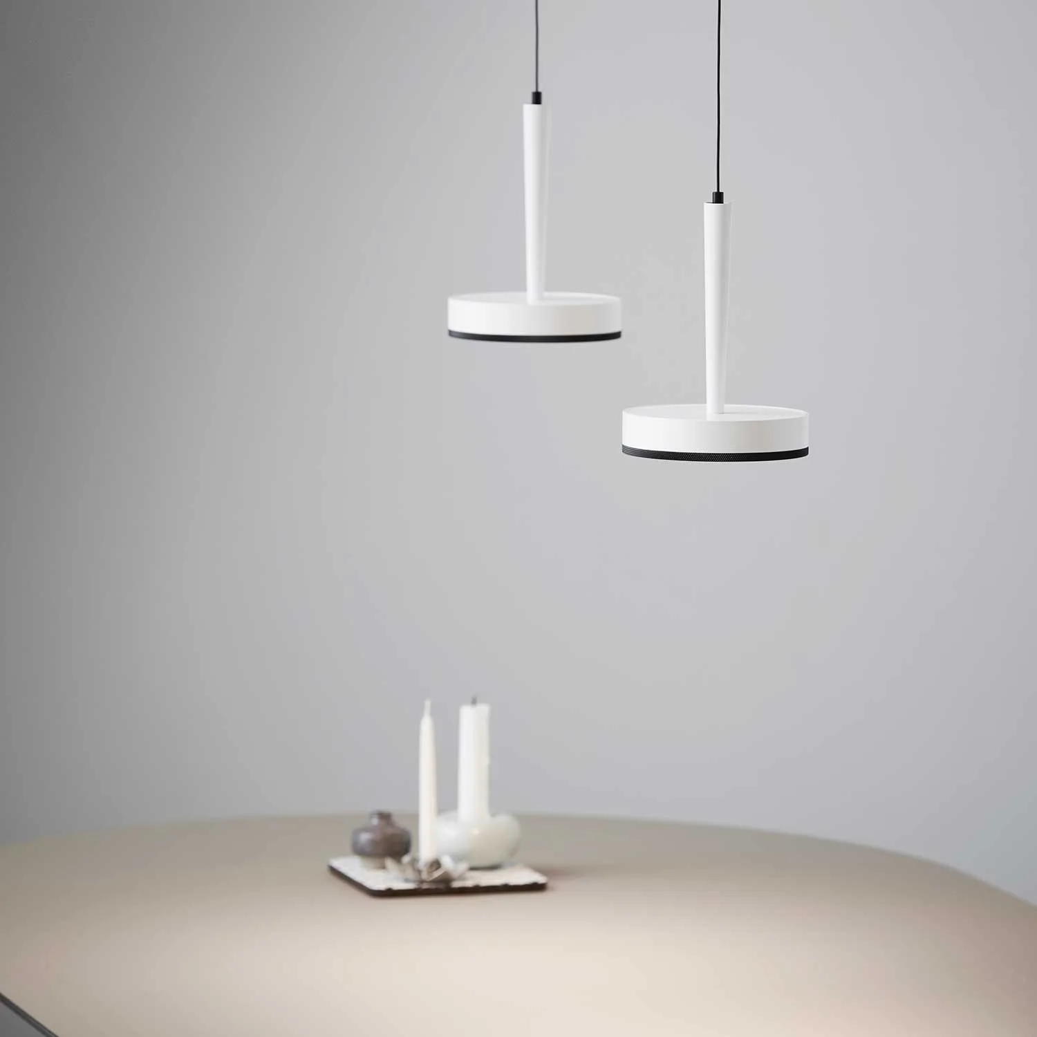 Die Pendelleuchte ist die ideale Wahl für die Beleuchtung über Esstischen, Kücheninseln, in Fluren oder als Lichtquelle in kleineren Räumen. Sie ist in vier ausgewählten Farbtönen erhältlich: matt weiß, matt schwarz, matt messing und matt bronze.