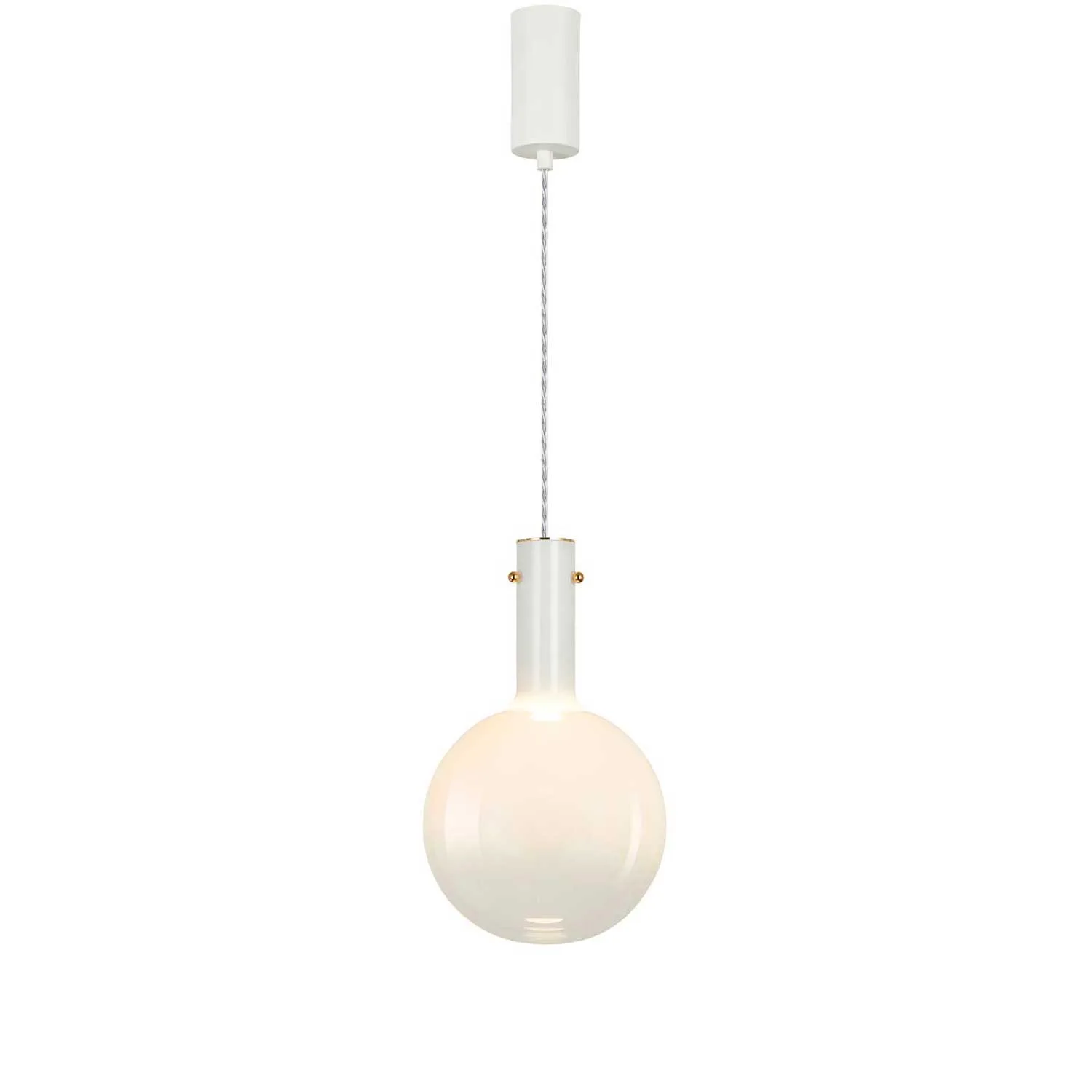Besonders auffällig sind die stilvollen Details: Eine Goldplatte am Kabeleinlass und feine Goldschrauben an der Seite des Glases verleihen der Raindrop einen Hauch von Luxus und Raffinesse. Diese Elemente kontrastieren wunderschön mit dem matten Weiß des Baldachins und dem transparenten Kabel, wodurch ein harmonisches und ansprechendes Gesamtbild entsteht.