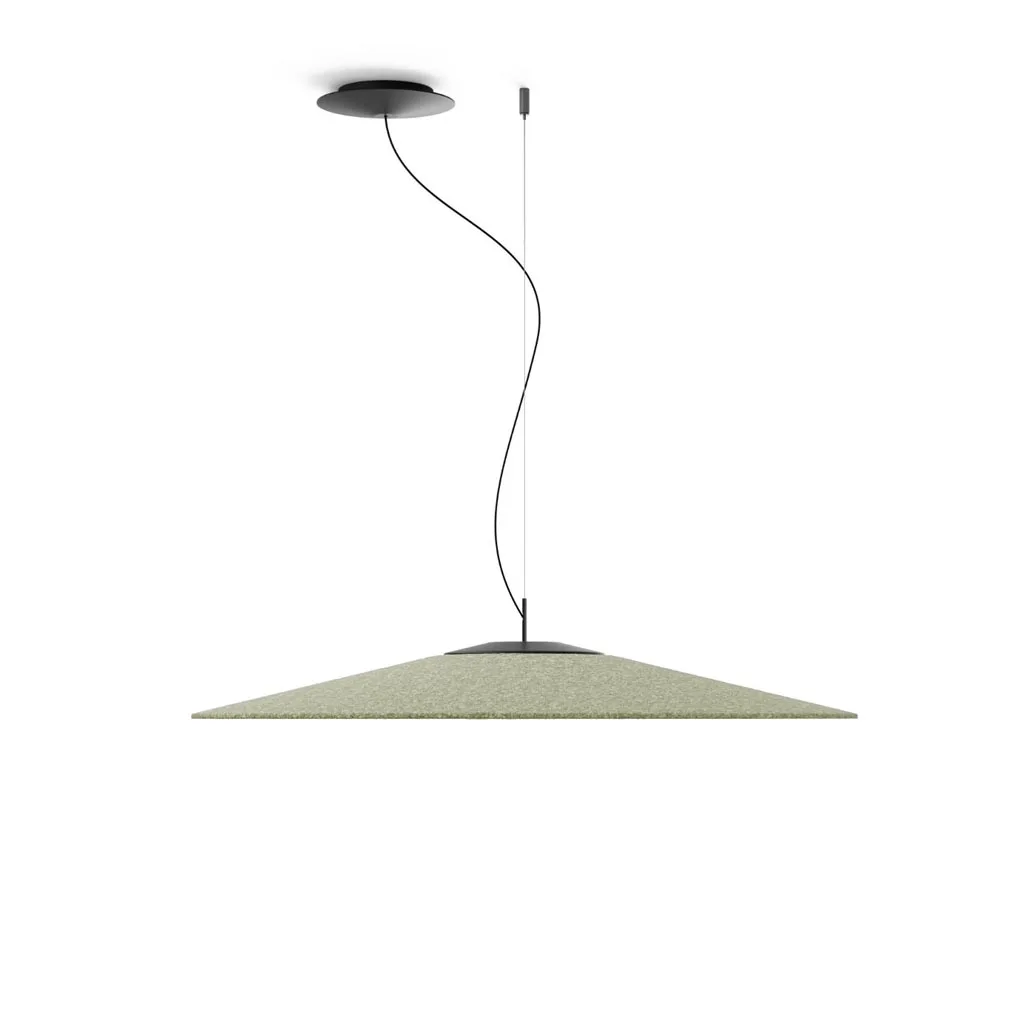 Der großzügige Reflektor besteht aus einer eleganten Filzkappe mit einem Recyclinganteil von 60 %. Dieser Filz verleiht der Leuchte nicht nur eine warme, textile Ästhetik, sondern verbessert auch spürbar die Raumakustik, indem er die Nachhallzeit effektiv reduziert. Das Ergebnis: Ein deutlich angenehmeres Klangumfeld – ideal für Wohnräume, offene Küchen, Homeoffices, Restaurants, Cafés, Empfangsbereiche oder moderne Großraumbüros.