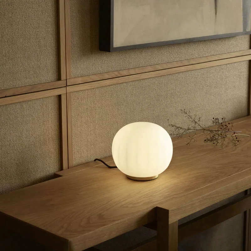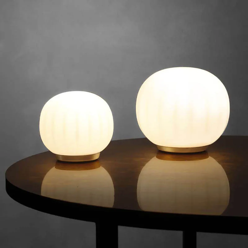 - Materialien: Diffusor aus mundgeblasenem Opalglas, Metallsockel aus Messing oder lackiertem Metall