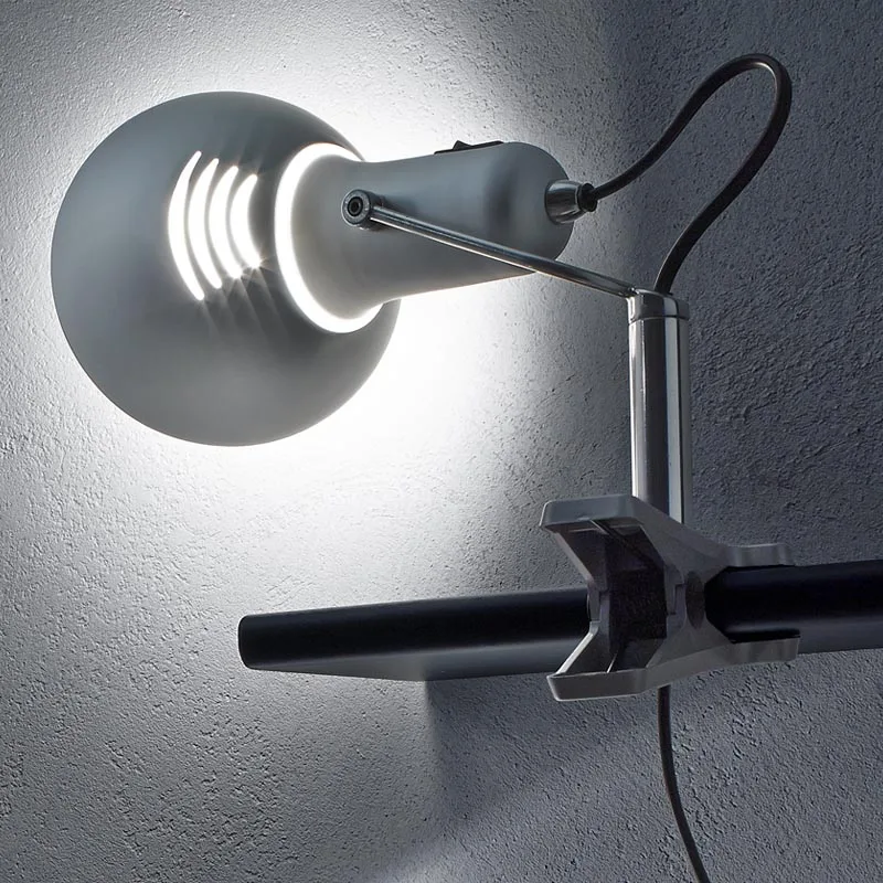 Dank eines dreh- und neigbare Leuchtenkopf kann der Lichtstrahl dorthin ausgerichtet werden, wo das Licht benötigt wird. Ein- und ausgeschalten wird die Leuchte über einen Schalter am Leuchtenkopf. Lumina Naomi wurde vom Designer Yaacov Kaufman für Lumina entwickelt und ist in der Farbausführungen Aluminium eloxiert erhältlich. Eine E27 Fassung erlaubt die Nutzung moderner und energieeffizienter LED-Lampen.