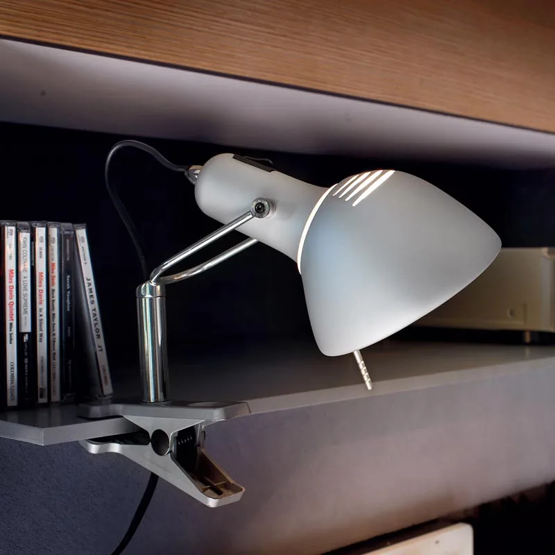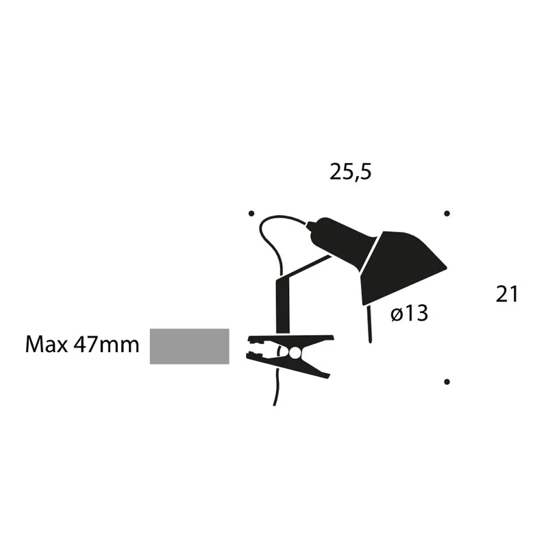 Naomi Pinza ist eine praktische Klemmleuchte, die mit einer Klemmzange ausgestattet ist. Damit lässt sich die Leuchte ganz einfach nach Bedarf an Tischplatten oder Regalen mit einer Dicke bis maximal 4,7 cm befestigen. Die Klemmleuchte bietet flexible Anwendungsmöglichkeiten in Wohn- und Arbeitsräumen, in denen schnell und einfach zusätzliches Licht erforderlich ist.