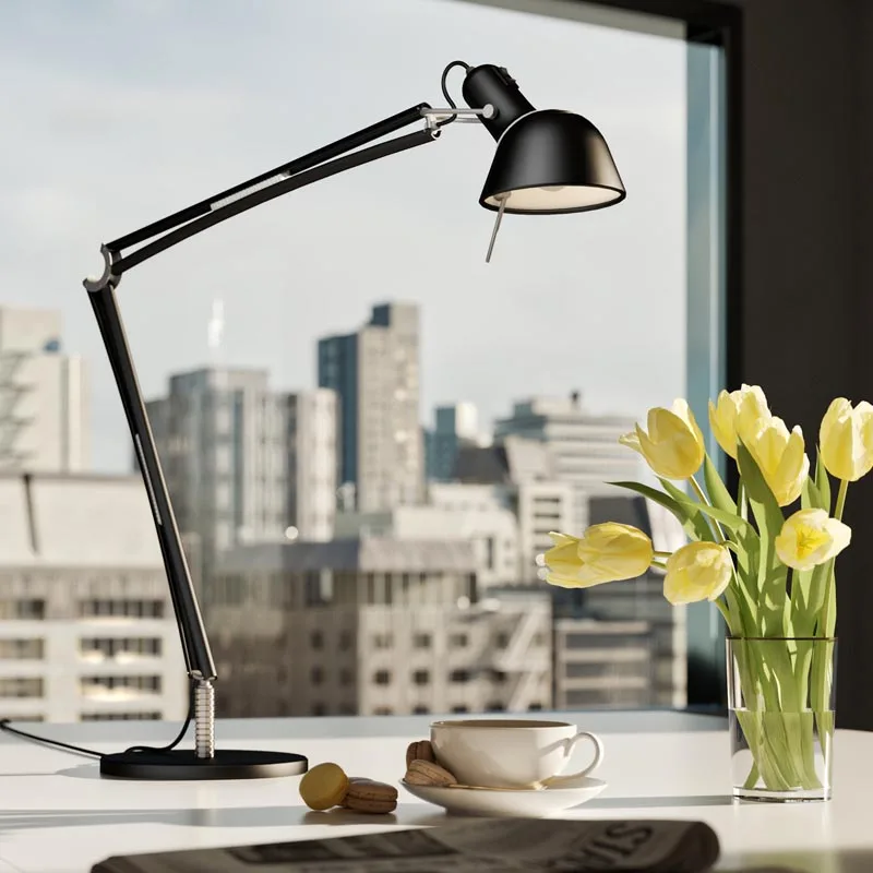Die Tischleuchte Naomi der italienischen Leuchtenmanufaktur Lumina besticht mit einem funktionalen Design, bei dem alle sichtbaren Mechanismen entfernt wurden. Dank vielfältiger Einstellmöglichkeiten und direktem, nach unten gerichteten Licht eignet sich Naomi daher bestens als Schreibtischleuchte im Büro oder dem Homeoffice. Der neigbare Leuchtenkopf ist um 360° drehbar und bietet in Verbindung mit einem dreh- und neigbaren Leuchtenarmen maximale Beweglichkeit, um den Lichtstrahl präzise auf der Tischfläche zu positionieren.