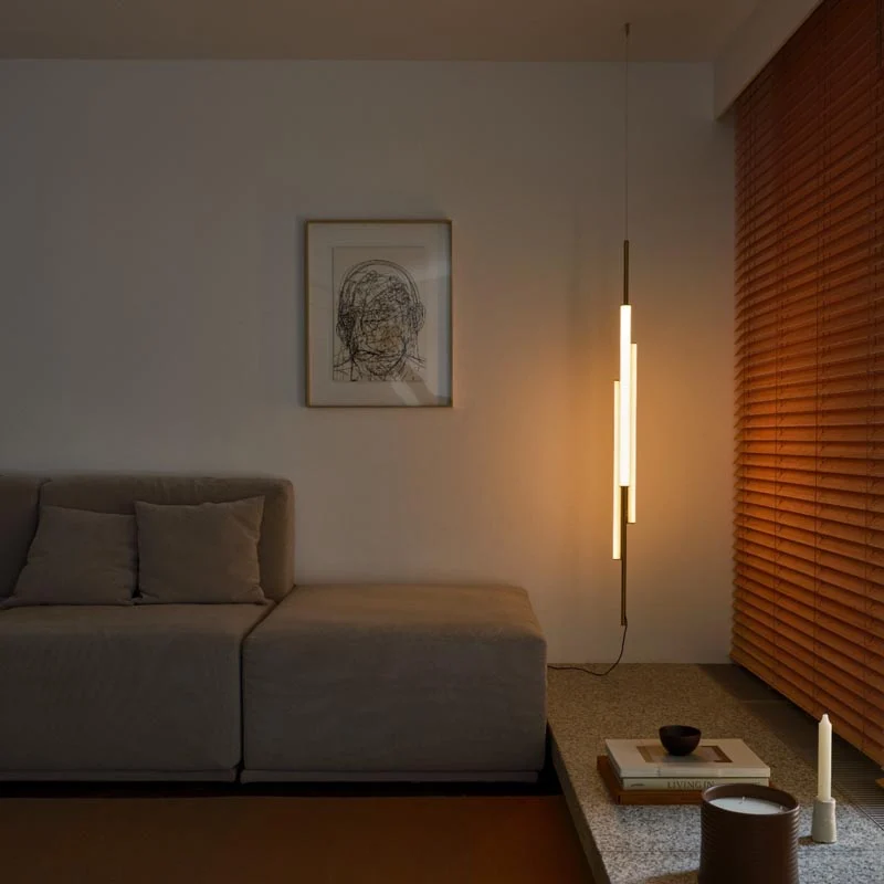 Die Ambrosia V 130 Plug-in von Marset ist eine vertikale LED-Pendelleuchte, die als schlankes, architektonisches Lichtobjekt die Raumhöhe betont und gezielt Akzente setzt. Entworfen vom spanischen Designstudio Ciszak Dalmas, interpretiert sie die klassische Linienleuchte neu und verbindet zeitlose Ästhetik mit moderner LED-Technologie.