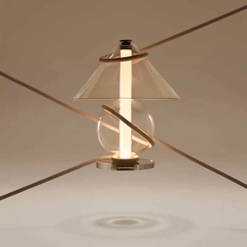 Mit der Tischleuchte “Fragile” untermauert der Designer Jaume Ramírez seine Faszination für zeitloses Design und entwirft eine Tischleuchte, die das Licht sanft nach allen Richtungen abgibt. Aus einem ursprünglichen Entwurf entwickelt er eine Glasstruktur, die durch Klarheit und Reinheit besticht. “Fragile” kombiniert verschiedene geometrische Formen: Ein filigraner Kegel ruht auf einer Kugel, beide vereint durch einen Zylinder, der sanftes Licht von unten ausstrahlt.