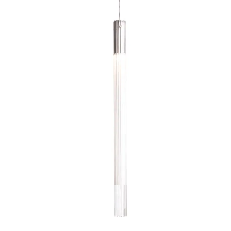 Nemo Ilium ist eine schlanke LED-Pendelleuchte für vielfältige Einsatzmöglichkeiten. Ob als Einzelpendel oder in stilvollen Clustern – mit Ilium lassen sich dekorative Beleuchtungslösungen für unterschiedlichste Wohnräume kreieren. Das diffuse Licht sorgt dabei für eine blendfreie und angenehme Raumbeleuchtung. Die Leuchte besteht aus einem transparenten Diffusor aus gerippten Glas, der eine energieeffiziente LED beinhaltet, die sich über einen externen Dimmer nach Belieben regeln lässt.