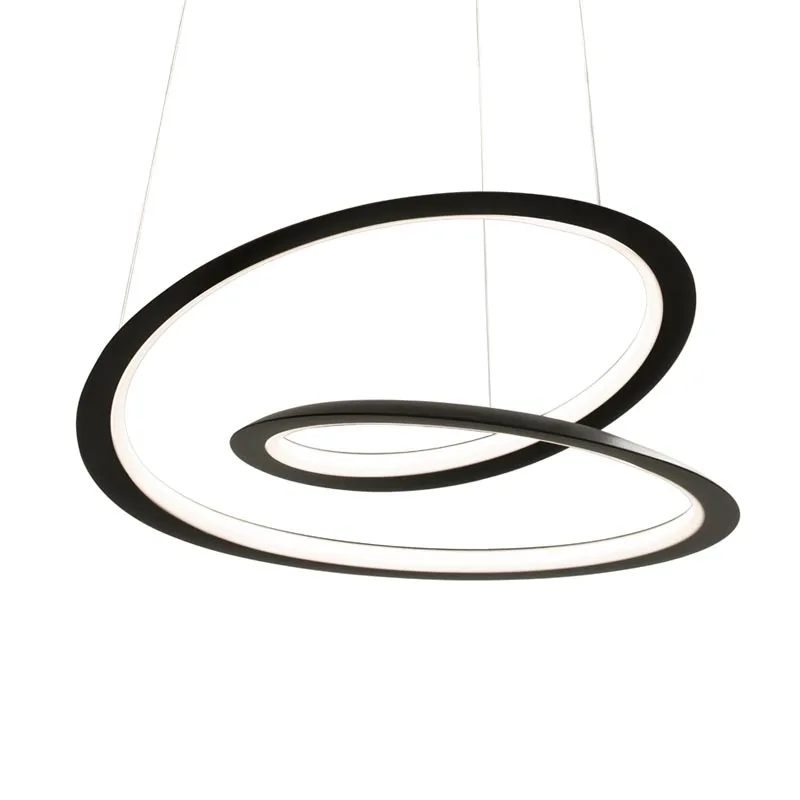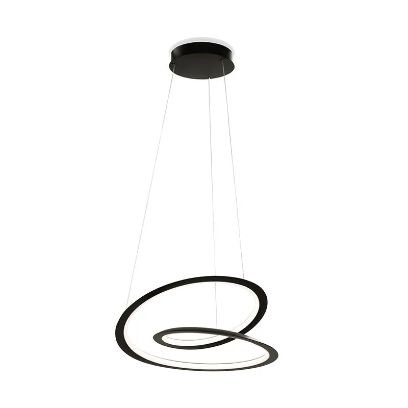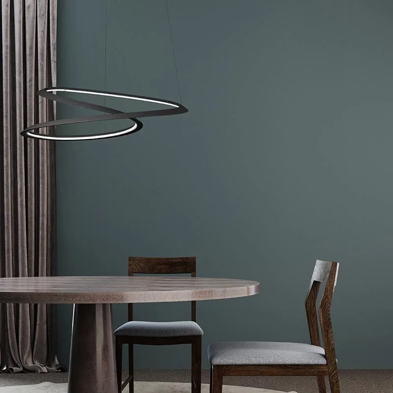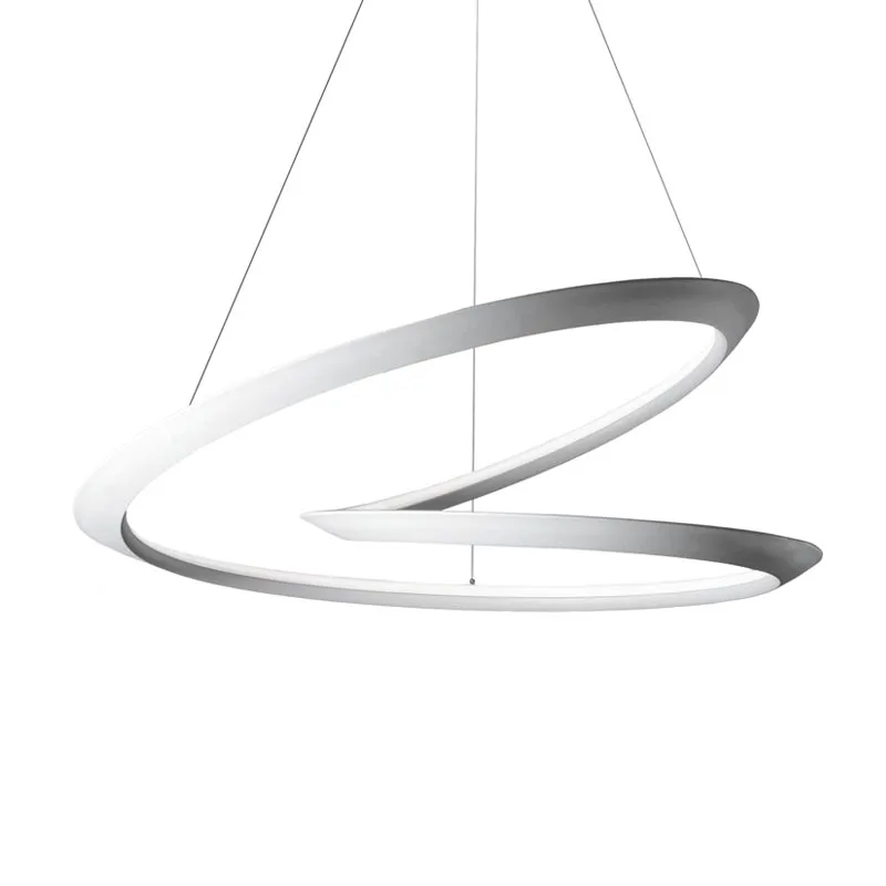 Die Struktur der Hängeleuchte besteht aus einem extrudierten, lackierten Aluminiumprofil, dessen durchgehende Linie durch einen von Nemo entwickelten dreidimensionalen Bearbeitungsprozess hergestellt und auf der Grundlage des geometrischen Prinzips des Möbiusbandes entworfen wurde. Die elegante Leuchte ist in den Farben Weiß matt, Schwarz oder in Gold lackierten Oberflächen erhältlich und bietet so vielfältige Möglichkeiten, das Lichtobjekt mit unterschiedlichen Einrichtungsstilen abzustimmen. Nemo Kepler ist wahlweise mit einer Lichtfarbe von 2.700 oder 3.000 Kelvin erhältlich. Nemo Kepler Petite spendet das Licht weich und blendfrei nach unten.