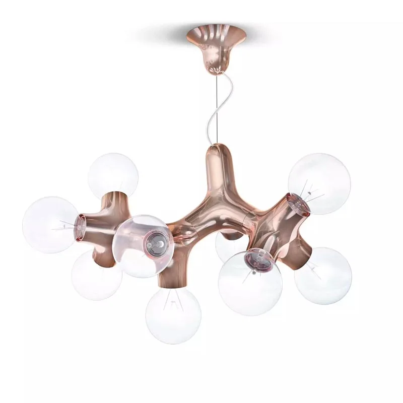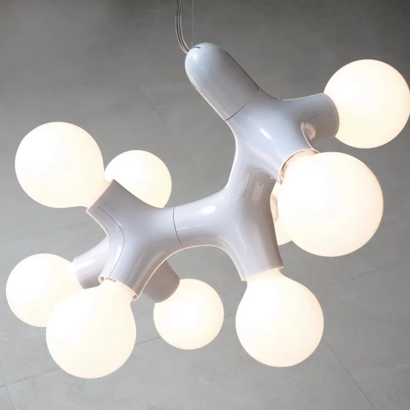 Mit ihrem einzigartigen und modernen Design verleiht die 9-flammige Pendelleuchte DNA PL-9.2 von next ihren Räumen eine ganz besondere Note. Diese von der DNA-Struktur inspirierte Leuchte zeichnet sich durch ihre organische Formgebung aus, die in faszinierendem Kontrast zu den verwendeten Materialien Kunststoff und Glas steht. Das innovative Design wurde von den kreativen Köpfen Wortmann und Hopf entwickelt.