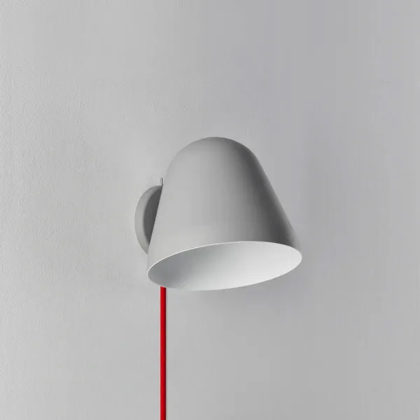 Die Leuchte ist in den eleganten Farbvarianten Schwarz matt, Weiß matt und Grau matt erhältlich. Ein praktischer Kippschalter befindet sich direkt an der Leuchte, was eine einfache und intuitive Bedienung gewährleistet. Für die Wandmontage steht die Leuchte ohne Kabel zur Verfügung – perfekt für einen Kabelauslass in der Wand. Alternativ gibt es eine Variante mit Textilkabel und Stecker in den Farben Rot, Weiß, Grau oder Schwarz, um maximale Flexibilität in der Anwendung zu bieten.