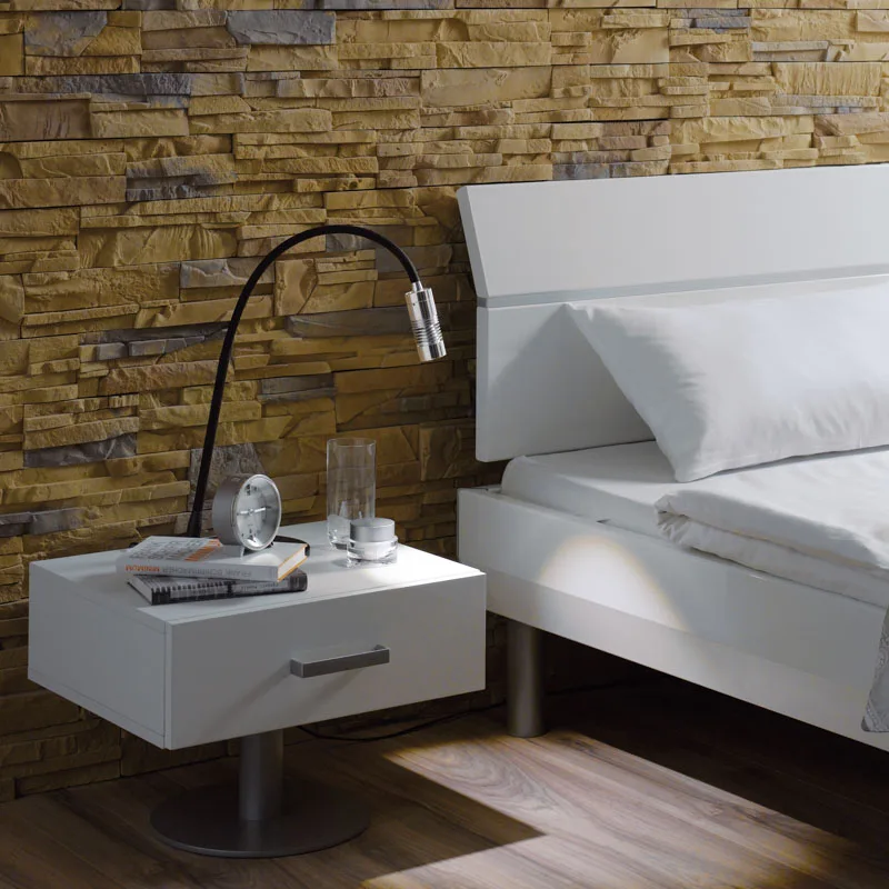 OLIGO A Little Bit ist eine elegante Tischleuchte, die sich dank eines mit Textil überzogenen Flexarm flexibel ausrichten lässt. Der filigrane Leuchtenkopf aus Aluminium beherbergt eine fokussierbare Glaslinse, die es ermöglicht, den Lichtaustritt im Bereich von 20 – 60° einzustellen. Auf diese Weise kann das Licht exakt in die jede gewünschte Richtung ausgerichtet werden. Ein dezenter, punktförmiger Taster, der gekonnt in das Leuchtendesign integriert ist, dient als funktionales Bedienelement, mit dem sich die Leuchte dimmen und schalten lässt. Die praktische Leseleuchte spendet brillantes Licht mit einem hohen Farbwiedergabeindex und eignet sich bestens als Nachttischleuchte im heimischen Schlafzimmer oder als stilvolle Ergänzung in der Hotellerie.