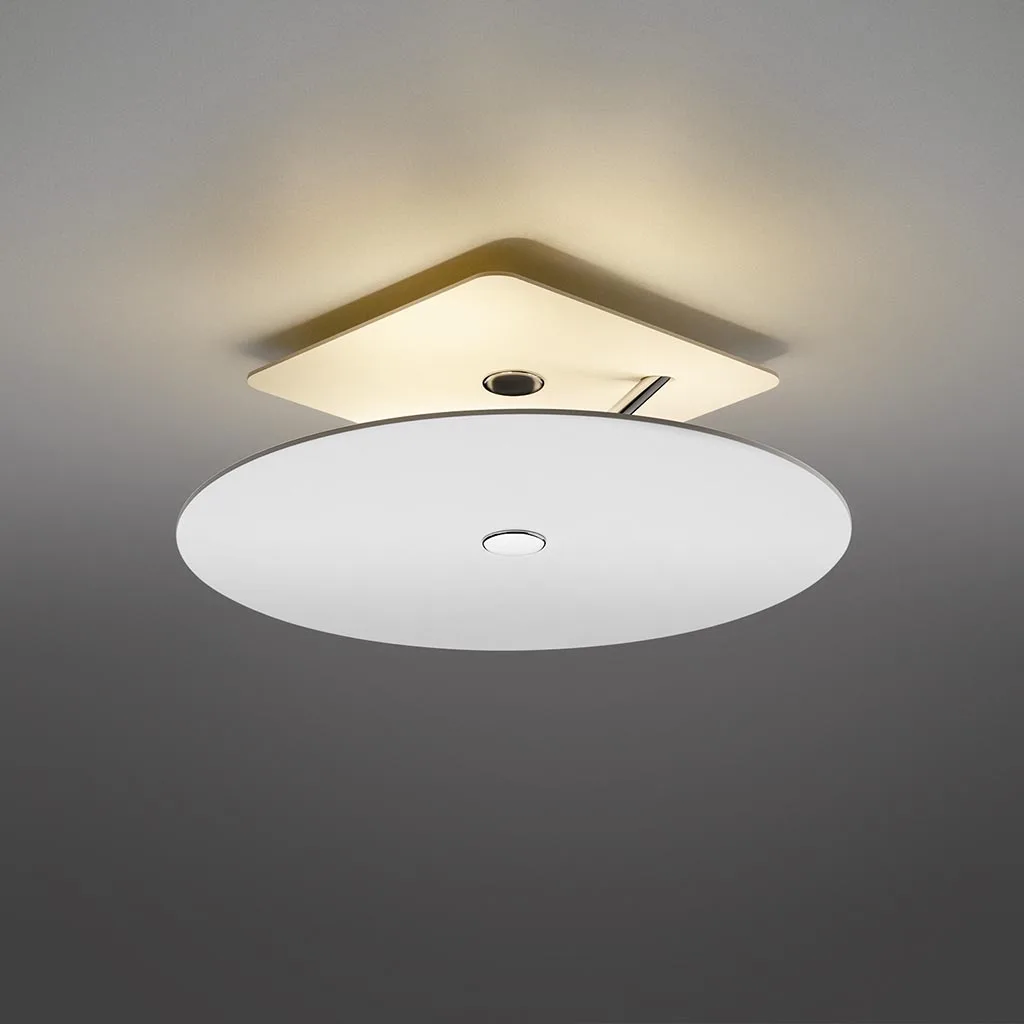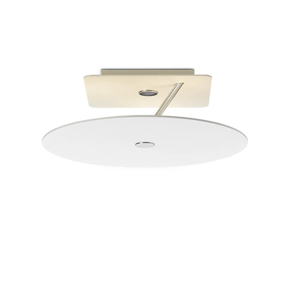 Ein innovatives Design trifft auf modernste Lichttechnologie – die LED-Deckenleuchte Beamy Up von OLIGO vereint beides in einer außergewöhnlichen Form. Mit ihrer raumschiffähnlichen Gestaltung schwebt sie elegant unter der Decke und setzt durch ihren indirekten Lichtaustritt blendfreie Akzente im Raum. Das klare, funktionale Design besteht aus einem quadratischen Deckenbaldachin mit sanft abgerundeten Kanten, der durch einen schrägen Verbindungsstab mit dem runden Blendschirm verbunden ist.