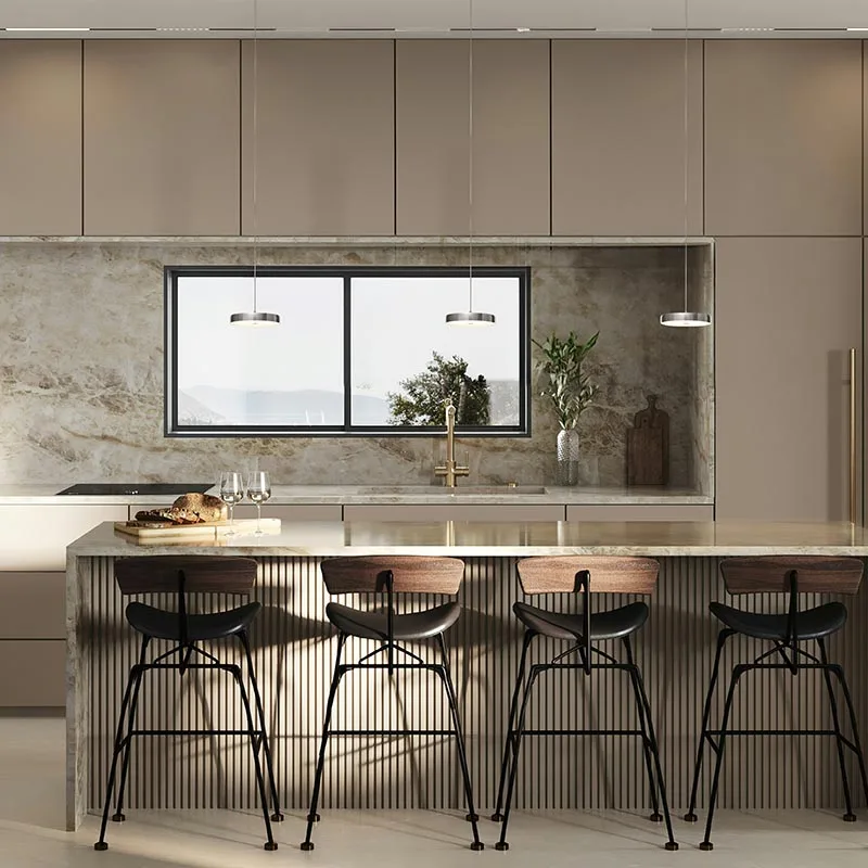 Ein besonderes Highlight ist das intuitive Bedienkonzept mittels Gestensensor. Die Leuchte reagiert auf einfache Handbewegungen zum Ein- und Ausschalten sowie auf Verweilgesten zum stufenlosen Dimmen. Die verbaute Prismatik-Technologie sorgt für eine optimale Lichtverteilung und verhindert störende Blendeffekte – perfekt für die Beleuchtung von Esstischen, Arbeitsflächen oder Kücheninseln. Dank des hohen Farbwiedergabeindex erscheinen alle Farben und Materialien im Lichtkegel besonders natürlich und brillant.