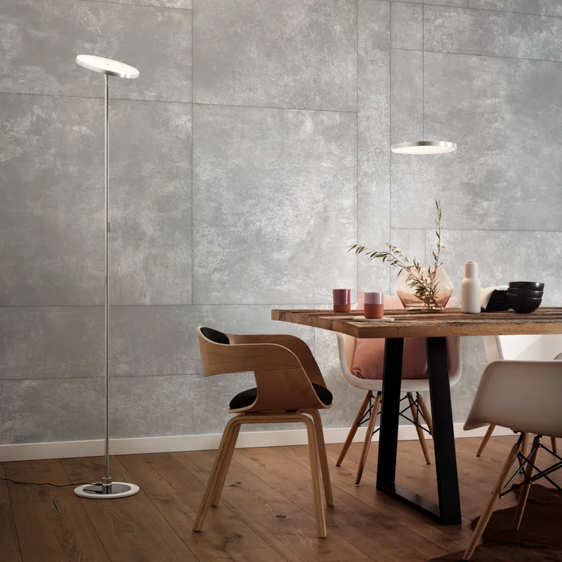 Zur Bedienung der Leuchte ist ein dezenter, punktförmiger Taster in das Design integriert, der weder die Optik stört noch die Benutzerfreundlichkeit beeinträchtigt. Einfach zugänglich und leicht zu bedienen, fügt er sich nahtlos in das Gesamtkonzept der OLIGO Decent Max LED-Stehleuchte ein und macht sie zu einem stilvollen und funktionellen Schmuckstück für jeden Raum.