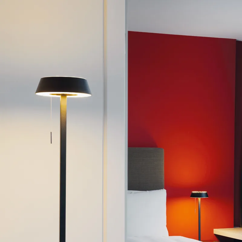 Geschaltet und gedimmt wird das elegante Lichtobjekt über einen Zugschalter. Die OLIGO Glance kann Sie bei Bedarf beim Verlassen des Raumes oder beim Zubettgehen begleiten. Im Sleep-tight-Modus dimmt die Lampe innerhalb von zwei Minuten gleichmäßig herunter und schaltet sich anschließend komplett aus. Eine integrierte Speicherfunktion ermöglicht es, die zuletzt gewählte Einstellung beim erneuten Einschalten der Lampe wiederherzustellen.
