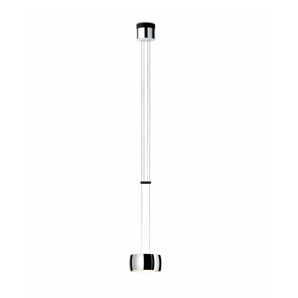 Das von Ralf Keferstein entworfene Design zeichnet sich durch einen hochwertigen Metallring aus, der perfekt mit der linsenförmigen, satinierten Glasschale harmoniert. Diese sorgt für eine weiche, gleichmäßige Lichtverteilung sowohl nach oben als auch nach unten, wodurch ein harmonisches Lichtbild entsteht. Dank der stufenlosen Höhenverstellbarkeit zwischen 160 cm und 200 cm lässt sich die Pendelleuchte optimal an unterschiedliche Raumhöhen anpassen.