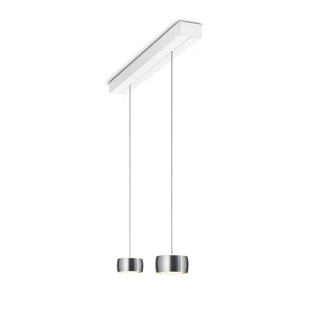 Die 2-flammige OLIGO Grace LED-Pendelleuchte ist eine gelungene Verbindung aus zeitloser Eleganz und moderner Lichttechnik. Sie eignet sich perfekt für kleinere bis mittelgroße Esstische, Kücheninseln oder Schreibtische, wo sie durch ihre gleichmäßige Lichtverteilung und blendfreie Ausleuchtung überzeugt. Das von Ralf Keferstein entworfene Design besticht durch schlichte, hochwertige Metallringe, kombiniert mit linsenförmigen, satinierten Glasschalen, die sowohl nach oben als auch nach unten für eine harmonische Lichtwirkung sorgen.