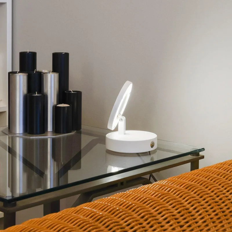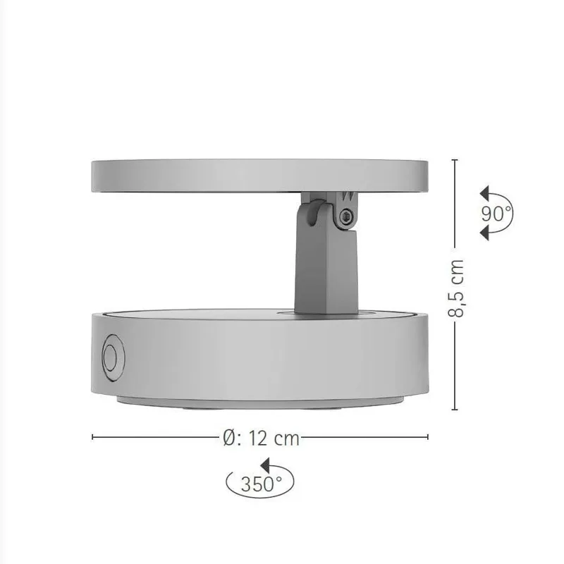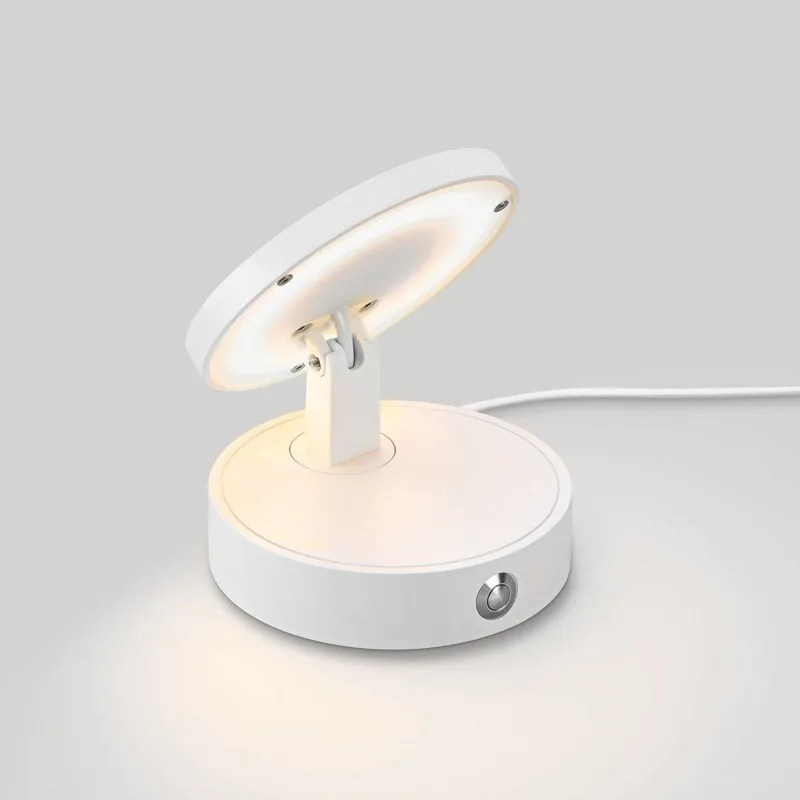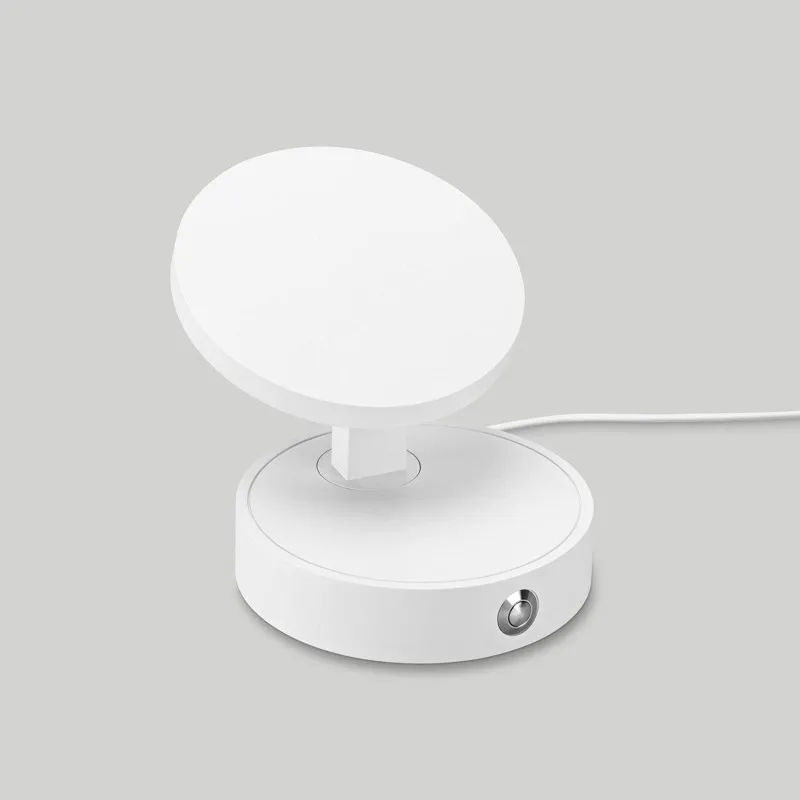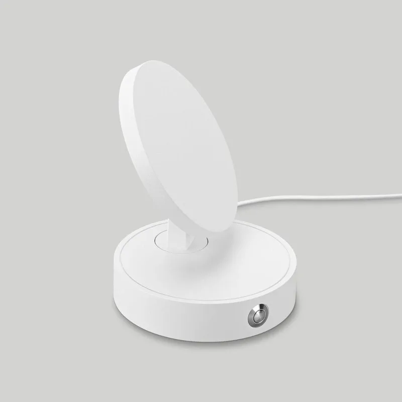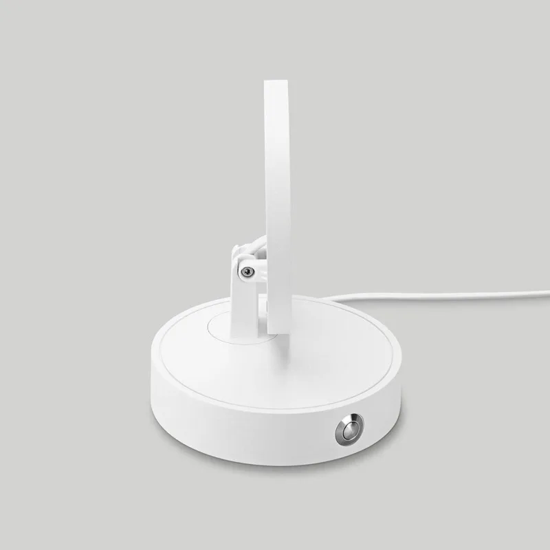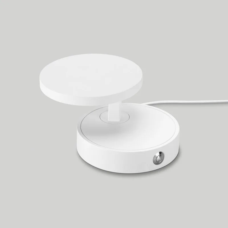 Der minimalistische Aufbau aus einem runden Fuß und einem flexiblen Leuchtenkopf ermöglicht eine exakte Lichtausrichtung: Der Kopf ist 90° schwenkbar und 350° drehbar, sodass sich sowohl direktes als auch indirektes Licht nach Wunsch erzeugen lässt.