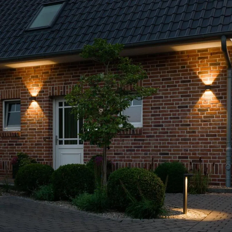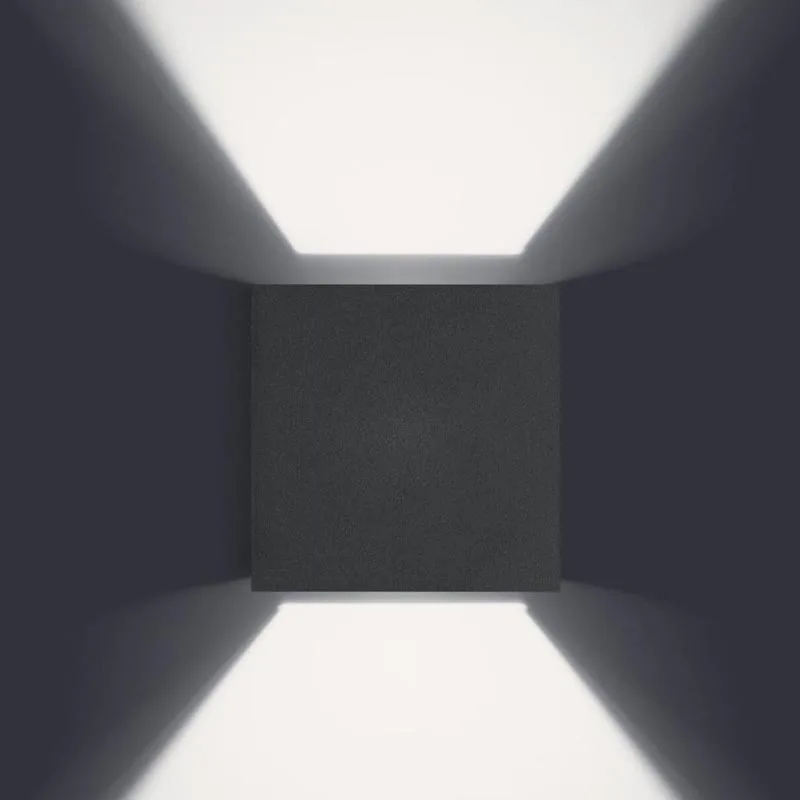 Kompakt in der Form, vielseitig in der Funktion: Die p.037 LED Außenwandleuchte von prediger.base begeistert durch ihr minimalistisches Design als schlichter Würfel und ihre beeindruckende Lichtwirkung. Einmal eingeschaltet, entfaltet die Leuchte ihre volle Strahlkraft: Zwei integrierte LED-Module geben sowohl nach oben als auch nach unten gerichtetes Licht ab, das die Wand indirekt und direkt beleuchtet. Besonders praktisch: Mit nur einem Handgriff lassen sich die Abstrahlwinkel beider Lichtquellen unabhängig voneinander anpassen.