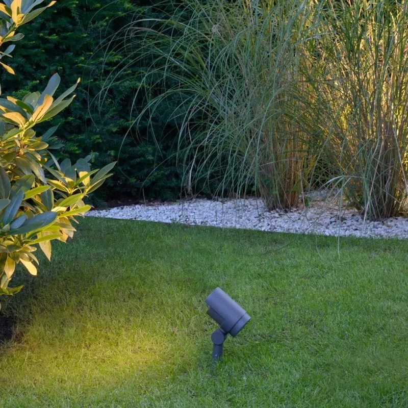 Gefertigt aus robustem Aluminiumdruckguss ist der Leuchtenkörper widerstandsfähig gegenüber Witterungseinflüssen. Der integrierte Erdspieß dient zugleich als Verlängerung des kurzen Auslegers, was nicht nur für Stabilität sorgt, sondern auch eine einfache Platzierung im Erdreich ermöglicht.