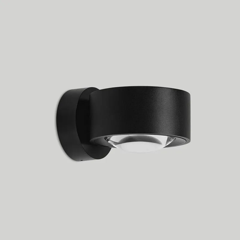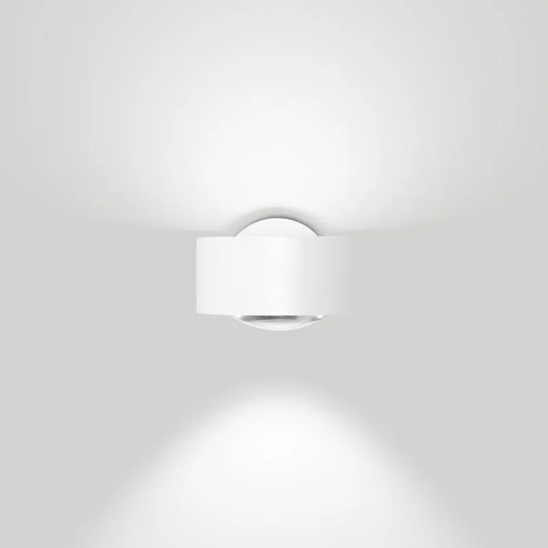 Die Linsen geben das Licht mit einem Abstrahlwinkel von 75 Grad ab, während der Diffusor auf der gegenüberliegenden Seite einen weichen, diffusen Lichtstrahl im 100-Grad-Winkel bietet. Eine hinter der Linse eingesetzte Kunststoffscheibe sorgt für eine sanfte Lichtverteilung. Wer einen scharf abgegrenzten Lichtkegel bevorzugt, kann diese Scheibe mühelos und werkzeuglos entfernen. Mit ihrem schlichten Design fügt sich die p.078 Wandleuchte nahtlos in jede Einrichtung ein.