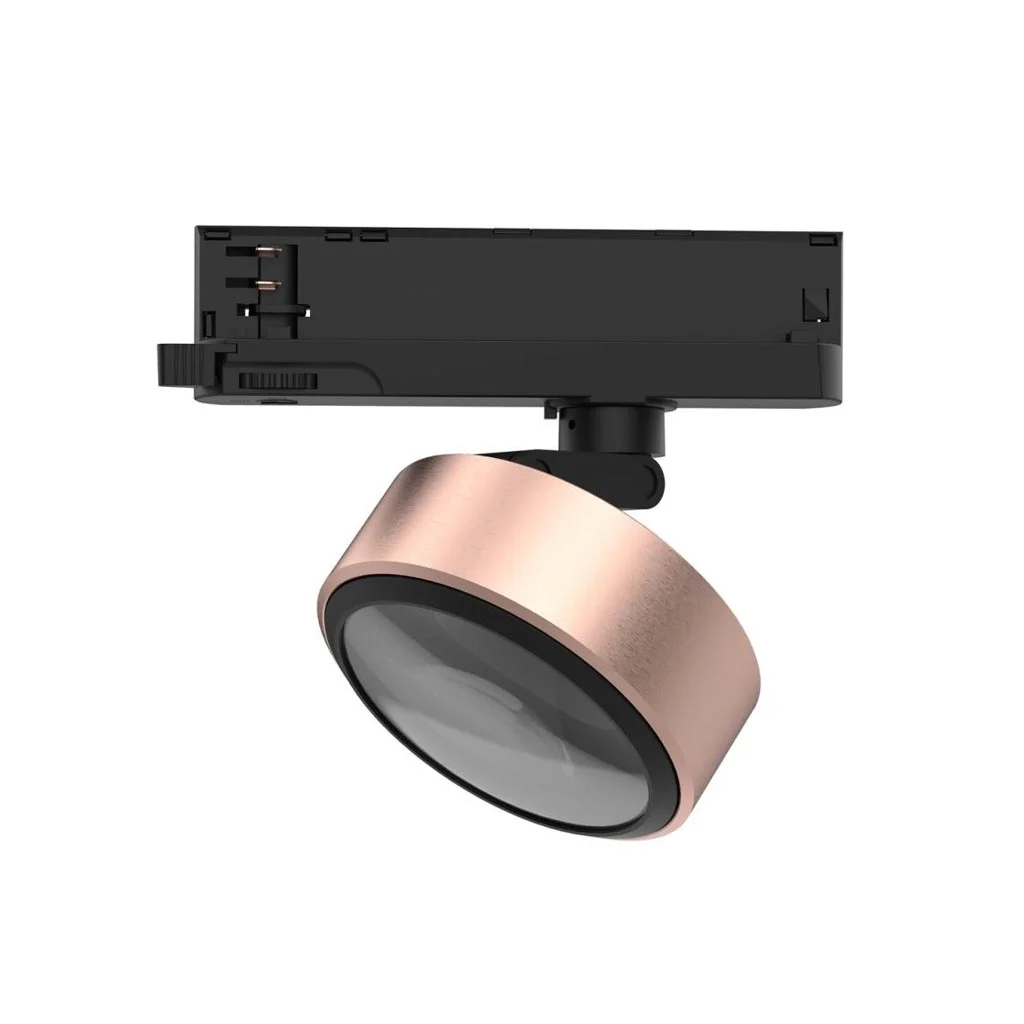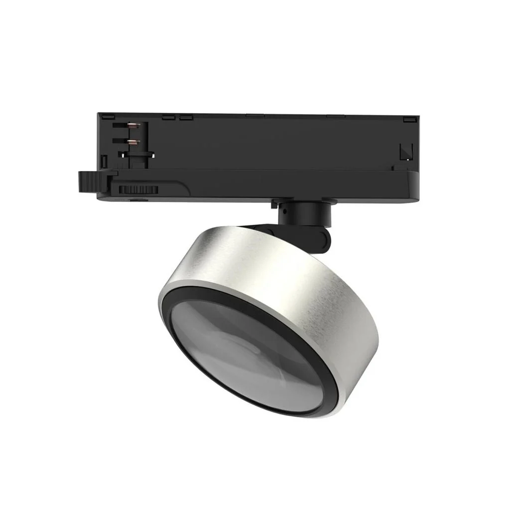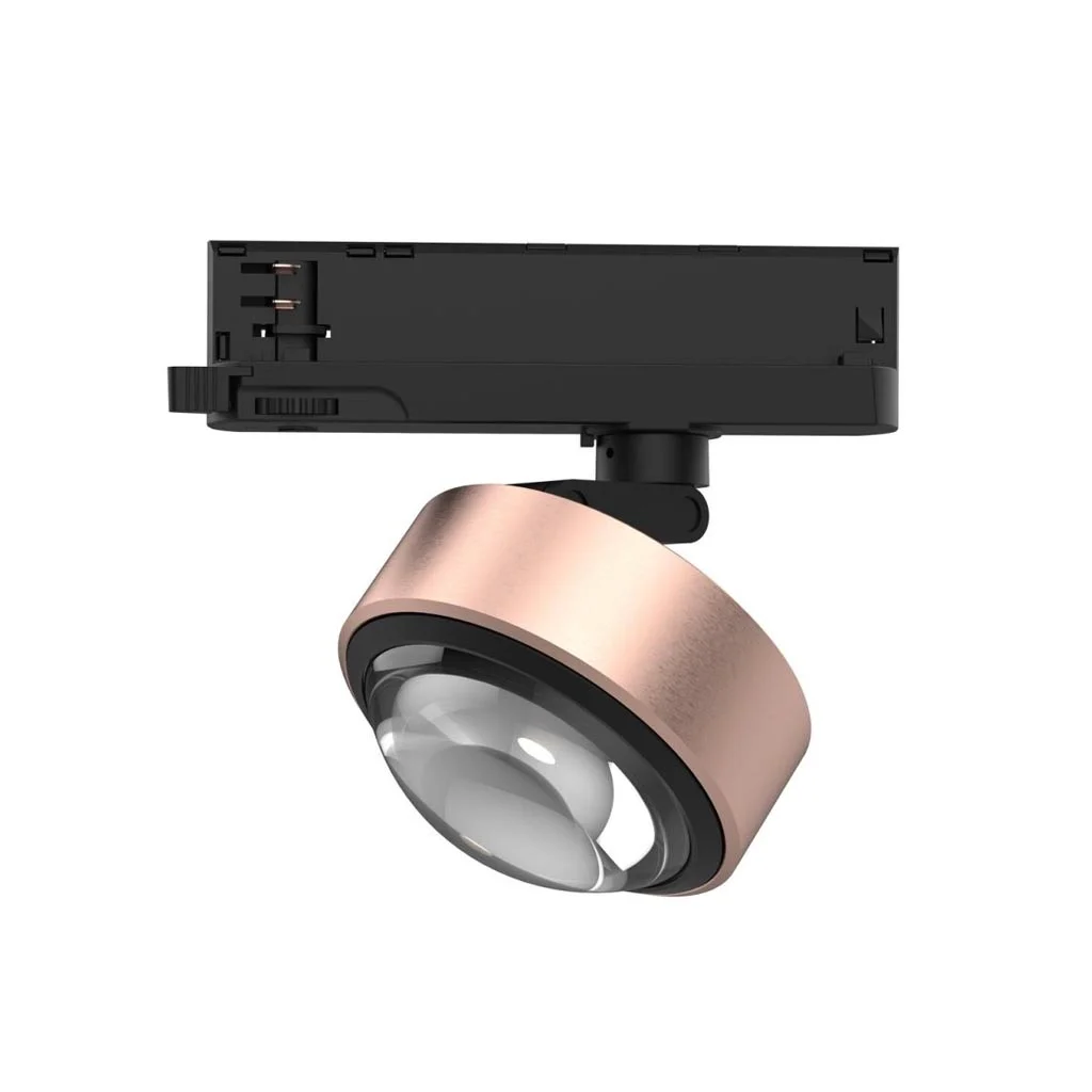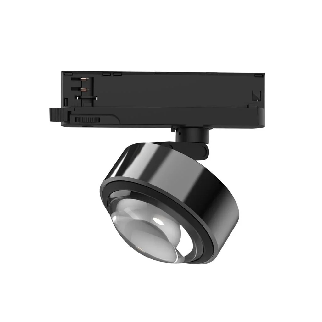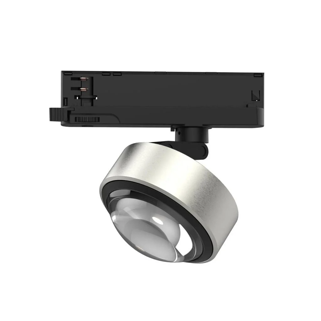 Das integrierte LED-Modul überzeugt mit extra-warmweißem Licht und einer exzellenten Farbwiedergabe von CRI > 97. Farben erscheinen natürlich, Oberflächen authentisch und Details klar herausgearbeitet. Die hochwertige Glaslinse erzeugt ein präzises Lichtbild. Optional lässt sich der Lichtkegel durch eine zusätzliche Streuscheibe sanfter konturieren. Der Linsentausch erfolgt werkzeugfrei. Gedimmt wird der Strahler über einen Phasenabschnittsdimmer.