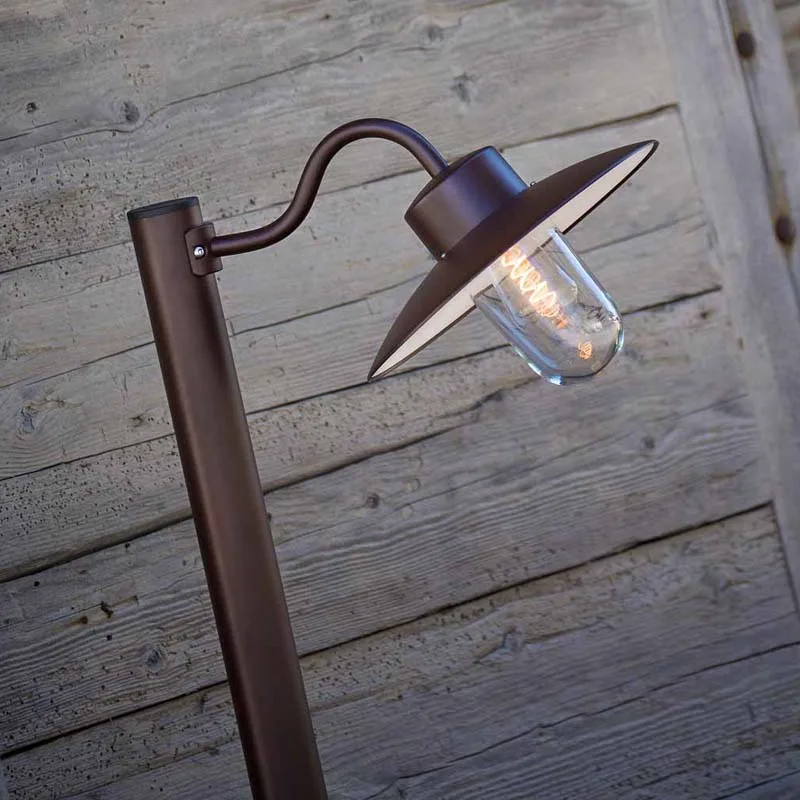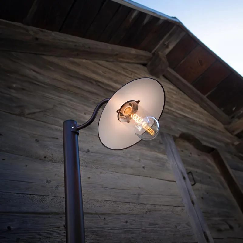 Roger Pradier Belcour N° 3 ist eine zeitlose, klassische Wegeleuchte, mit der sich Einfahrten und Wege stilsicher und stimmungsvoll beleuchten lassen. Die Pollerleuchte besteht aus einem 101 cm hohen Masten und einem filigran geschwungenen Arm, der den Leuchtenschirm nach vorne neigt und so die Fläche vor der Leuchte optimal ausgeleuchtet.
