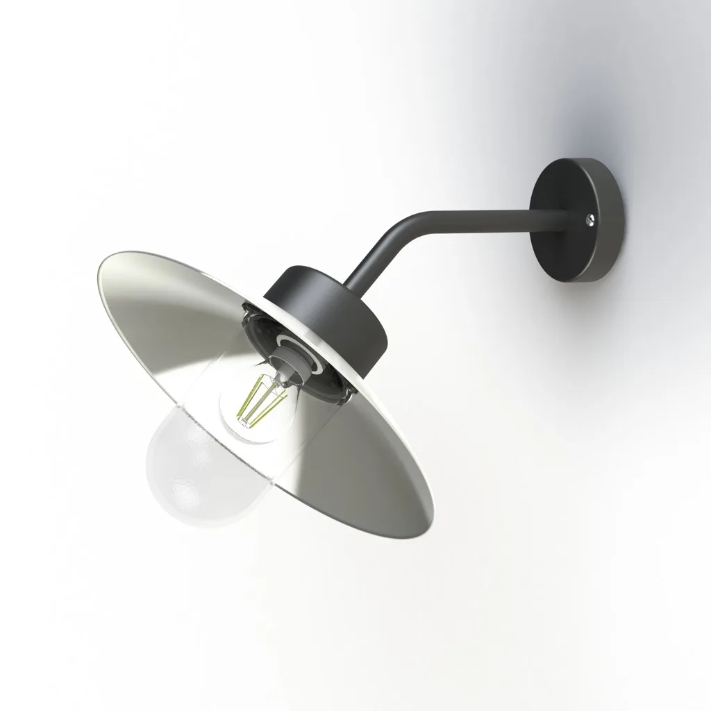 Die Belcour N° 8 Außenwandleuchte von Roger Pradier kombiniert Qualität, Funktionalität und Ästhetik auf bemerkenswerte Weise. Der geschwungene Wandarm der Belcour N° 8 ist das markante Merkmal dieser Leuchte. Durch die Neigung des Arms um 45° Grad nach vorne wird der runde Leuchtenschirm optimal positioniert, um eine gleichmäßige Ausleuchtung der Fläche unterhalb der Leuchte zu gewährleisten. Dadurch entsteht eine angenehme und funktionale Beleuchtung, die Wege, Hauseingänge und andere Bereiche im Außenbereich stilvoll hervorhebt.