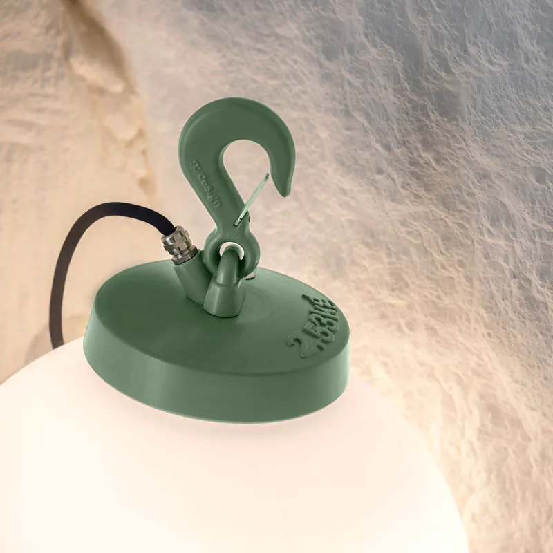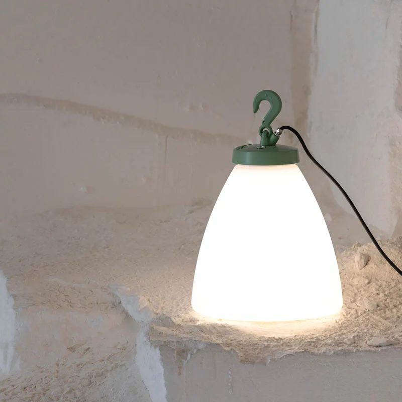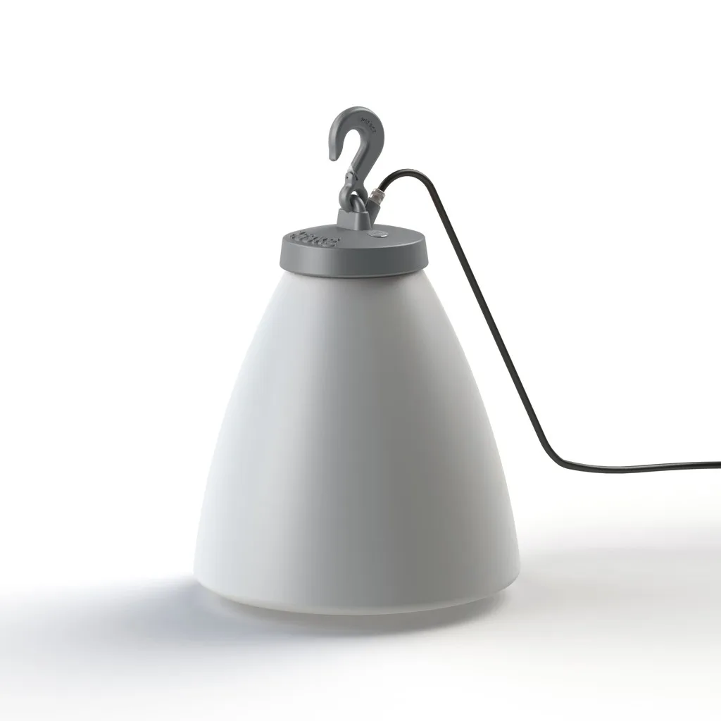 Roger Pradier Grumo N° 1 ist eine konisch geformte Bodenleuchte, die sich dank eines stabilen Hakens aus Aluminium an Bäumen, Überdachungen oder anderen Strukturen aufhängen lässt. Ein 7 Meter langes Anschlusskabel bietet Ihnen die Flexibilität, die Leuchte weit entfernt von einer Stromquelle zu platzieren. Ob als Bodenleuchte, Tischleuchte oder Hängeleuchte – Grumo ist eine flexible, mobile Beleuchtungslösung für Balkon, Terrasse oder Garten. Die Leuchte besteht aus einer hochwertigen Aluminiumstruktur und einem Diffusor aus satiniertem Polycarbonat, der das Licht weich und blendfrei verteilt.