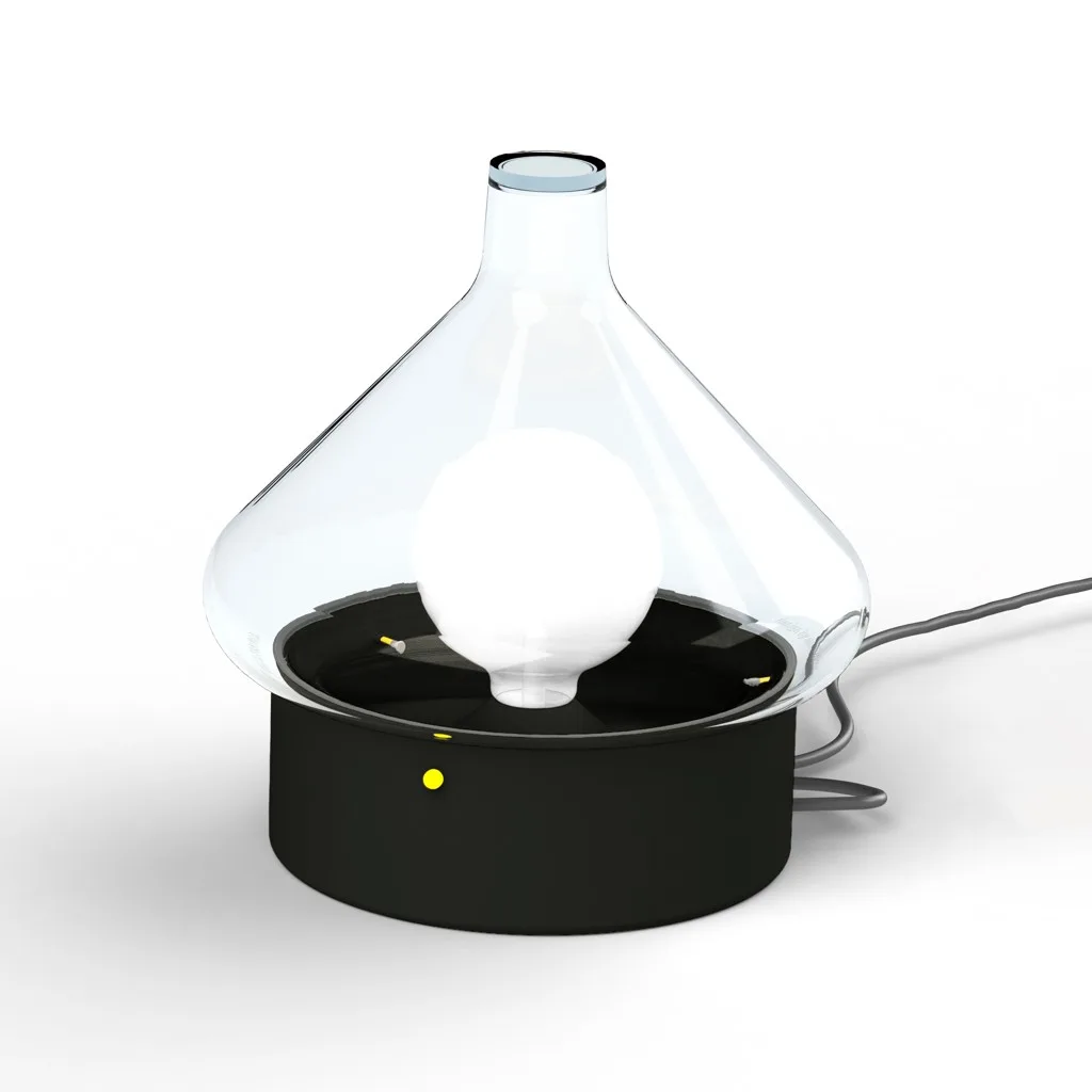 Mit ihrem stylischen Retro Look setzt die mobile Außenleuchte Roger Pradier La Hutte N° 1 stylische Akzente im Außenbereich. Ob als Tischlicht im Garten, dem Balkon oder der Terrasse – die Leuchte lässt sich dank des mitgelieferten 5 m langen Kabels auch fernab von Stromquellen platzieren. Entwickelt wurde die La Hutte Kollektion, von der renommierten französischen Designerin Matali crasset für den Leuchtenhersteller Roger Pradier. Das charakteristische Design dieser Leuchte kennzeichnet sich durch einen gewölbten Kegel-Diffusor aus mundgeblasenem Klarglas, der auf einer runden Basis montiert ist und somit den Blick auf das verwendete Leuchtmittel freigibt. Sie erhält speziell durch den Einsatz von LED-Filament-Leuchtmitteln eine zeitgemäße Laternen-Ästhetik.