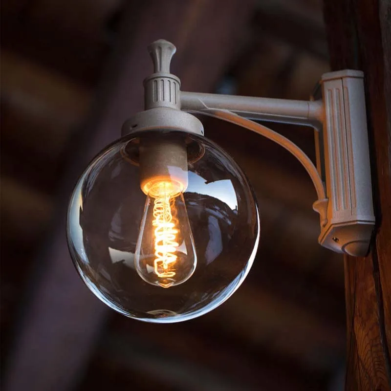 Pradier Moon N° 2 ist eine zeitlos schöne Außenwandleuchte im klassischen Look. Der nach unten gerichtete kugelförmige Diffusor aus geräuchertes Methacrylat erlaubt einen Blick auf das Leuchtmittel. Besonders gut zur Geltung kommt die Leuchte, wenn diese mit LED-Filament Leuchtmitteln bestückt wird.