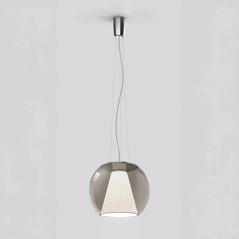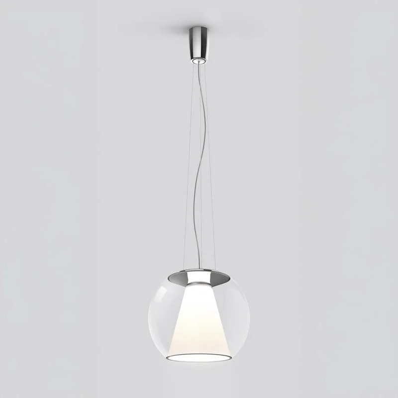 Die elegante LED-Pendelleuchte DRAFT Rope M interpretiert die klassische Kugelleuchte neu und präsentiert sie in einer zeitgenössisch prägnanten Form. Die Kombination aus der transparenten, mundgeblasenen Glaskugel und dem matten, konischen Innenreflektor schafft einen fesselnden optischen Kontrast, der zum Blickfang in jedem Raum wird.