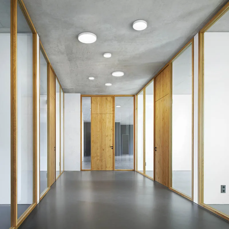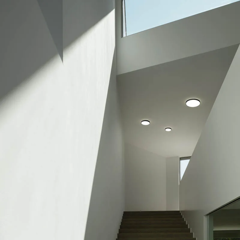 Mit ihrer minimalistischen Formensprache ist sie universell einsetzbar und besonders wirkungsvoll im Kontext moderner Architektur. Eine speziell für jede Größe der Leuchte berechnete Lasergravur sorgt für eine gleichmäßige Ausleuchtung ohne erkennbare Hotspots und gewährleistet dabei eine hohe Lichteffizienz. Diese Konstruktion ist ausschlaggebend für die flachen und eleganten Proportionen der Leuchte.