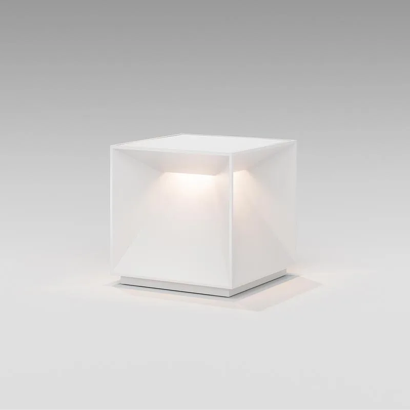 Design & Funktion: Die angeschrägten Seiten dieses faszinierenden Kubus spielen mit Licht und Reflexion, wodurch die Leuchte angeschaltet fast wie ein Kunstobjekt wirkt. Blendfreie Ausleuchtung kombiniert mit einem ansprechenden Akzentlicht nach oben schafft nicht nur eine funktionelle Beleuchtung, sondern auch ein besonderes Ambiente.